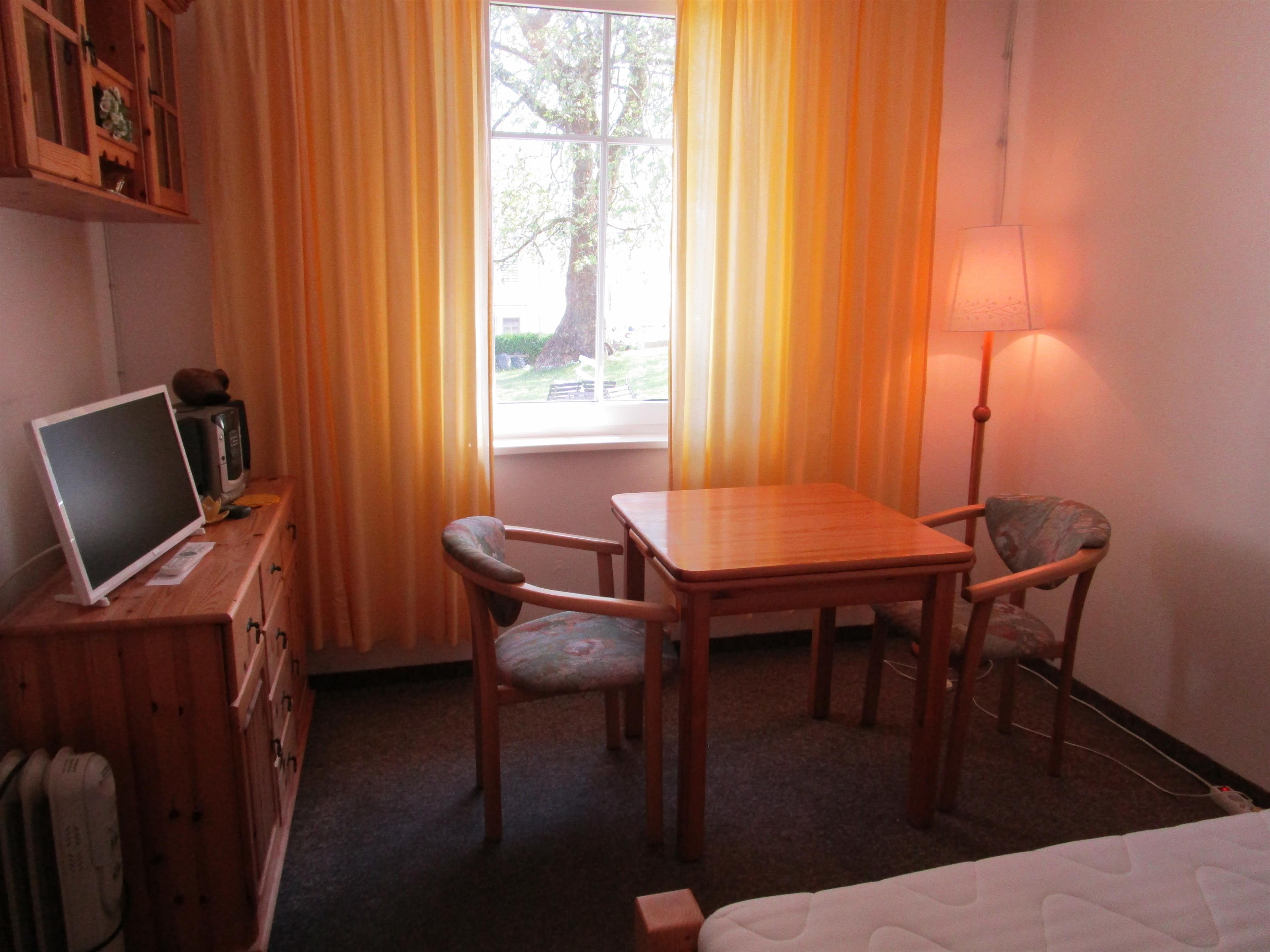 Ihnen stehen neben einem Kühlschrank auch eine Kaffeemaschine und eine Mikrowelle zur Verfügung.