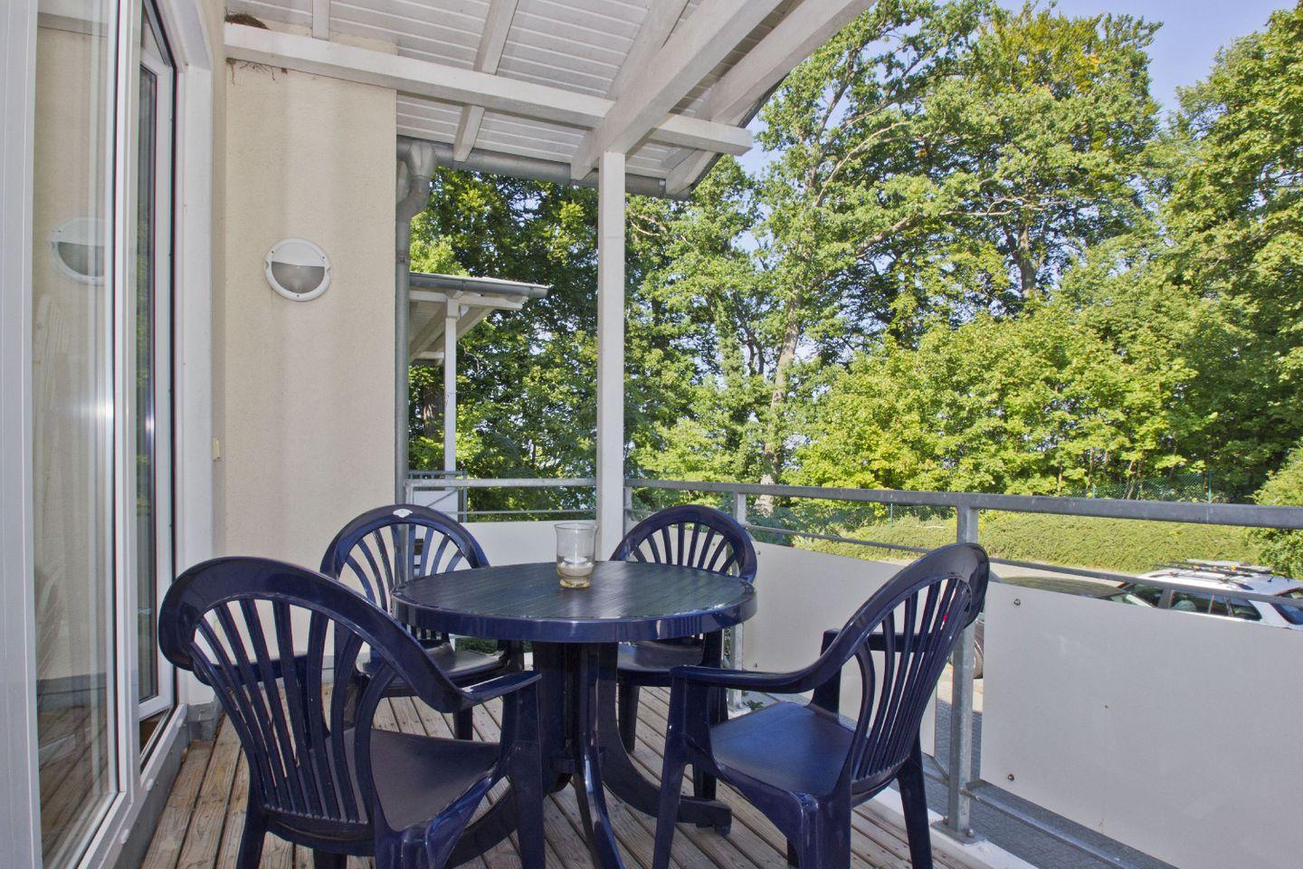 ALLGEMEINE ECKDATEN // 2-Raum Ferienwohnung für bis zu 4 Personen, 42m², Balkon, eingeschränkter Meerblick (durch die Bäume) ++