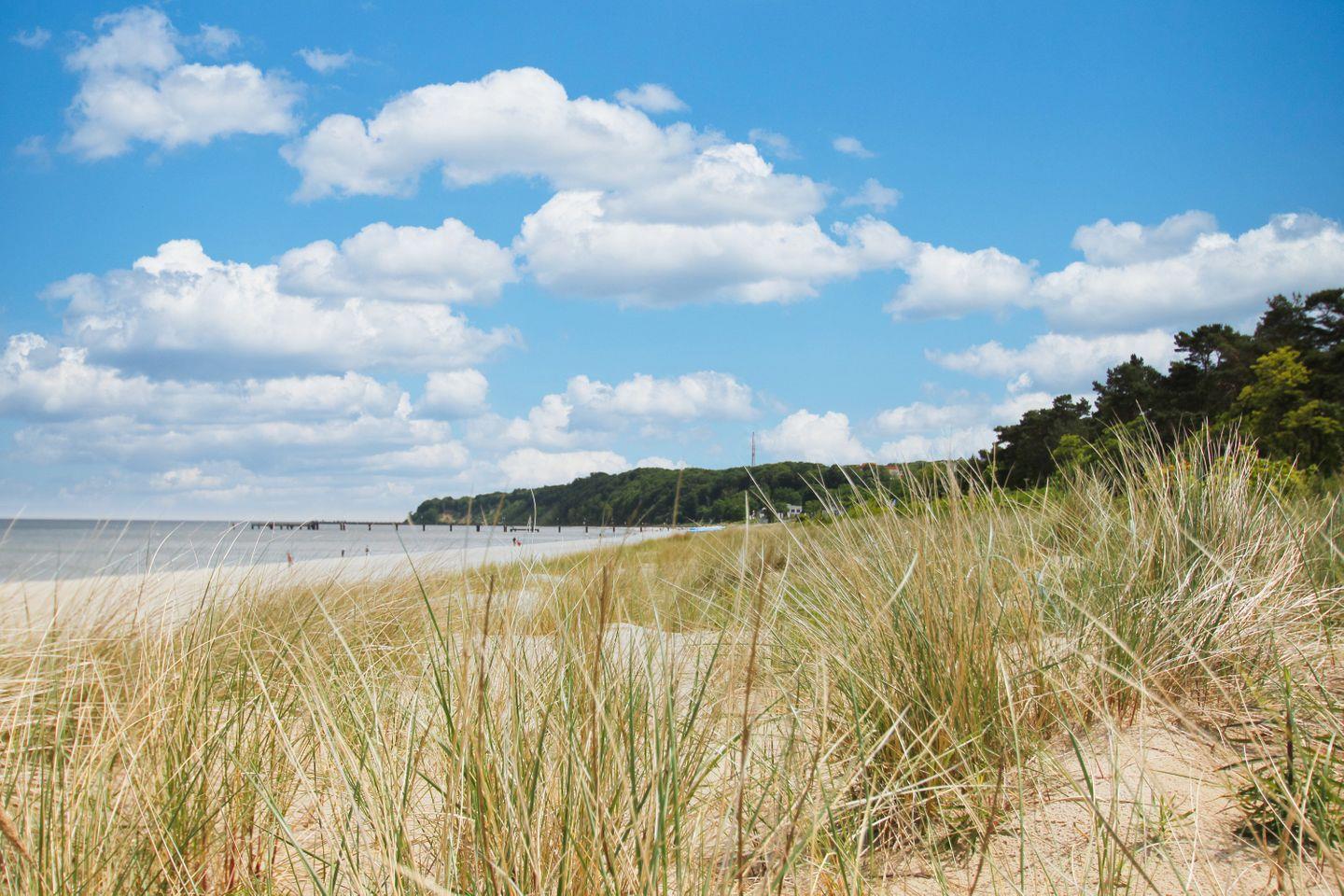 Der feinsandige Badestrand und die beliebte Bernsteinpromenade sind nur wenigen Gehminuten von der Villa Maria entfernt. Tagsüber können Sie nach Herzenslust das kühlende Nass der Ostsee genießen oder einfach einen Strandspaziergang machen. In den Sommermonaten finden an der Kurmuschel und auf dem Kurplatz bei der Bernsteinpromenade Konzerte und Veranstaltungen statt. Der süd-östliche Teil der Insel Rügen bietet Ihnen eine große Vielfalt an Rad- und Wanderwegen über Wiesen, Wälder und die "Zickerschen Alpen", bis hin zum Greifswalder Bodden. Lernen Sie die kleinen urigen Fischerorte wie Gager, Groß Zicker und Thiessow kennen. In den kleinen charmanten Gaststätten können Sie eine wohlverdiente Pause machen und fangfrischen Ostseefisch essen.