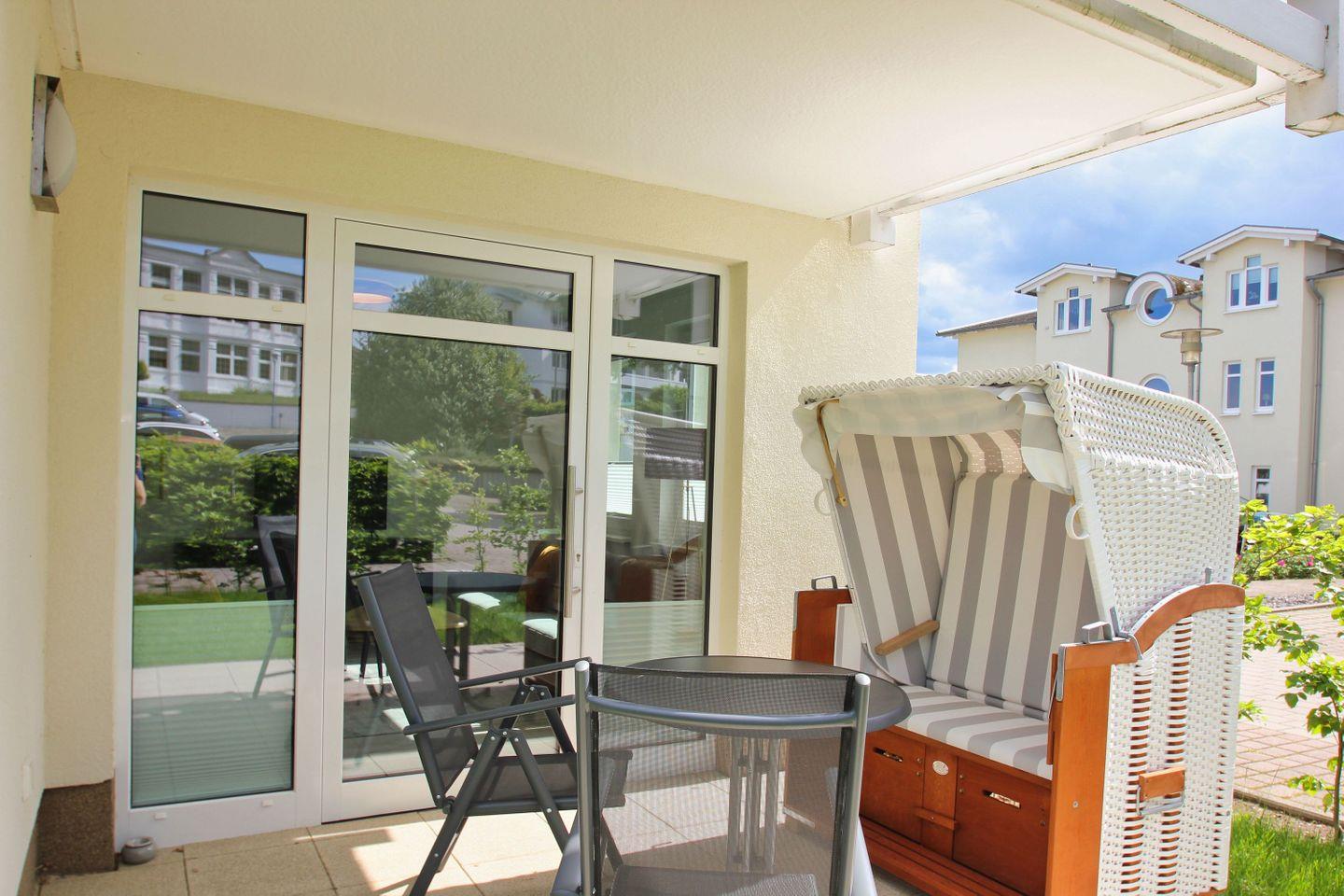 Terrasse, gratis Nutzung vom AHOI Erlebnisbad und Sauna - Meeresblick FeWo 78
