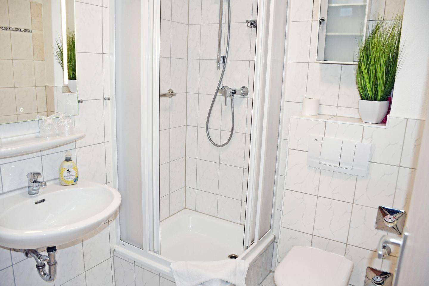 Bad mit Dusche und WC.