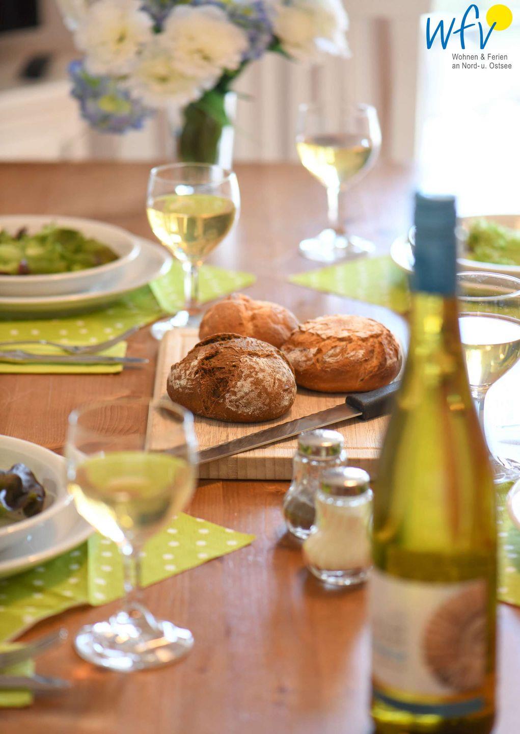 Für eine bequeme Selbstverpflegung ist die Küchenzeile der Rügener Ferienwohnung u.a. mit einem 4-Plattenherd, Backofen, Mikrowelle und Geschirrspüler ausgestattet. Kaffeeliebhaber können zwischen der klassischen Kaffeemaschine und dem Kaffee-Vollautomaten (mit Kapseln) wählen.