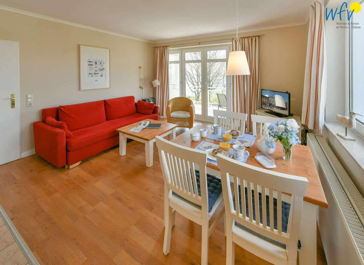 Herrlich entspannte Stunden auf dem sonnigen Südbalkon garantieren Ihnen unvergessliche Urlaubsmomente! Zu der Ferienanlage „Haus am Hövt“ gehört zudem eine große Außenanlage mit Gemeinschaftsgarten, Grillplatz, Tischtennisplatte und Spielmöglichkeiten.