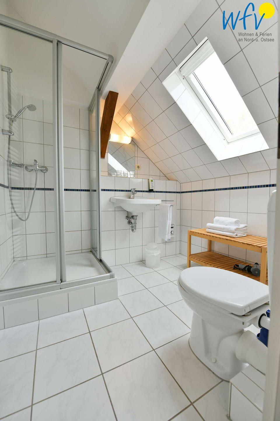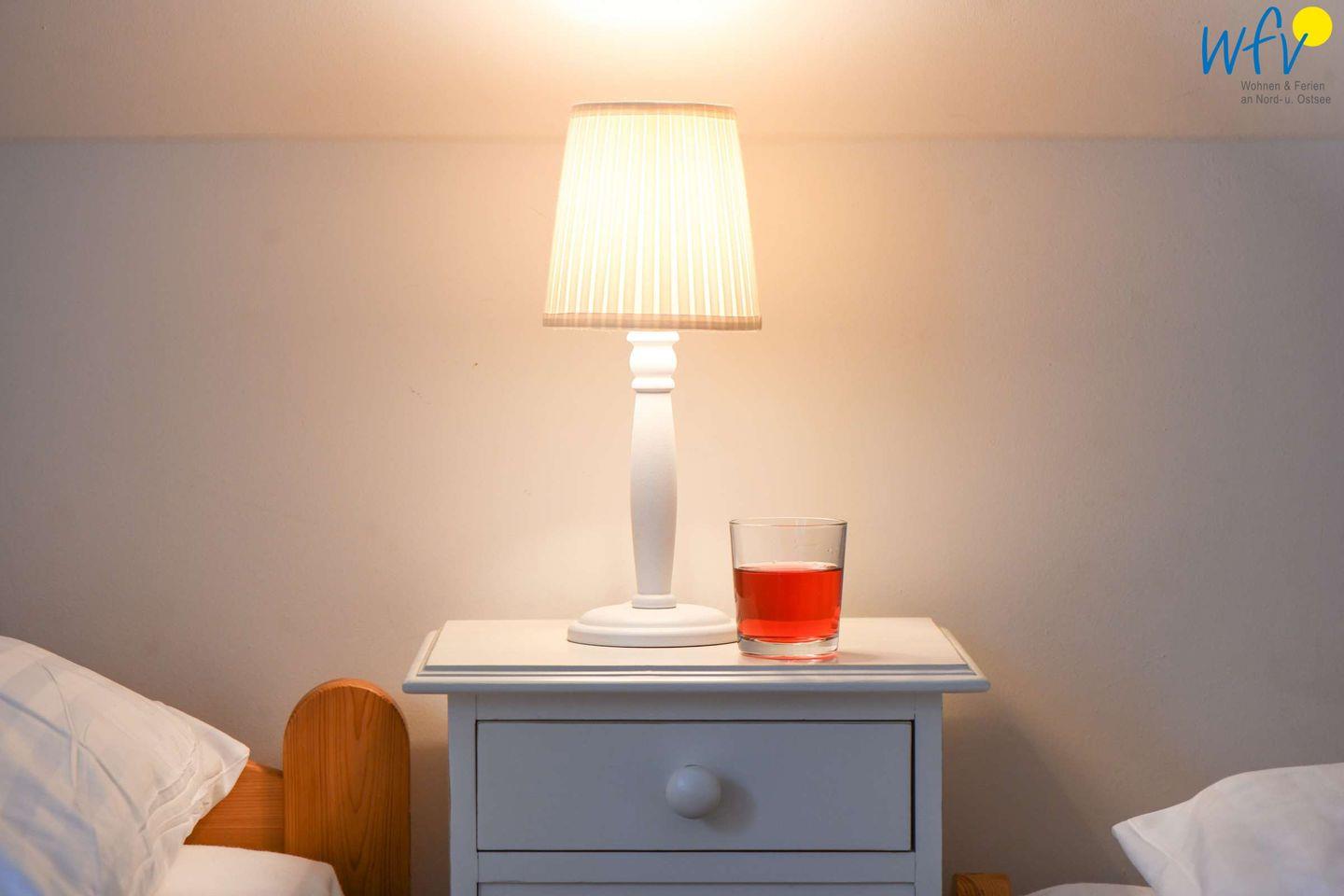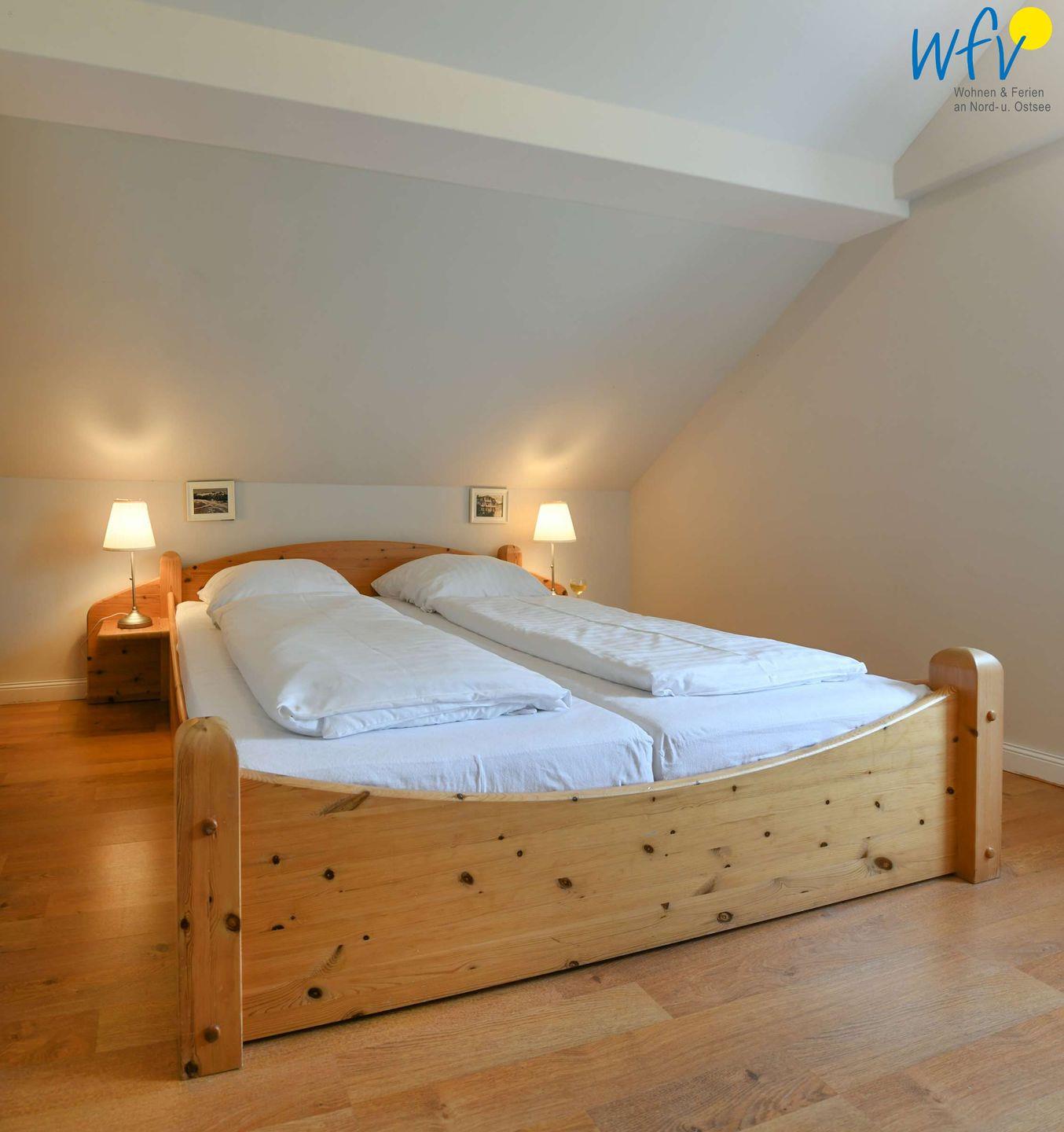 Im Erdgeschoss erwartet Sie ein Wohnraum mit gemütlicher Couchecke, Sesseln und modernem TV sowie eine Küche mit Essbereich. Im Obergeschoss befinden sich zwei separate Schlafzimmer, die mit einem Doppelbett (1,80 m x 2 m) bzw. zwei Einzelbetten (0,90 m x 2 m) ausgestattet sind. Eine Aufbettung ist möglich (auf Anfrage).