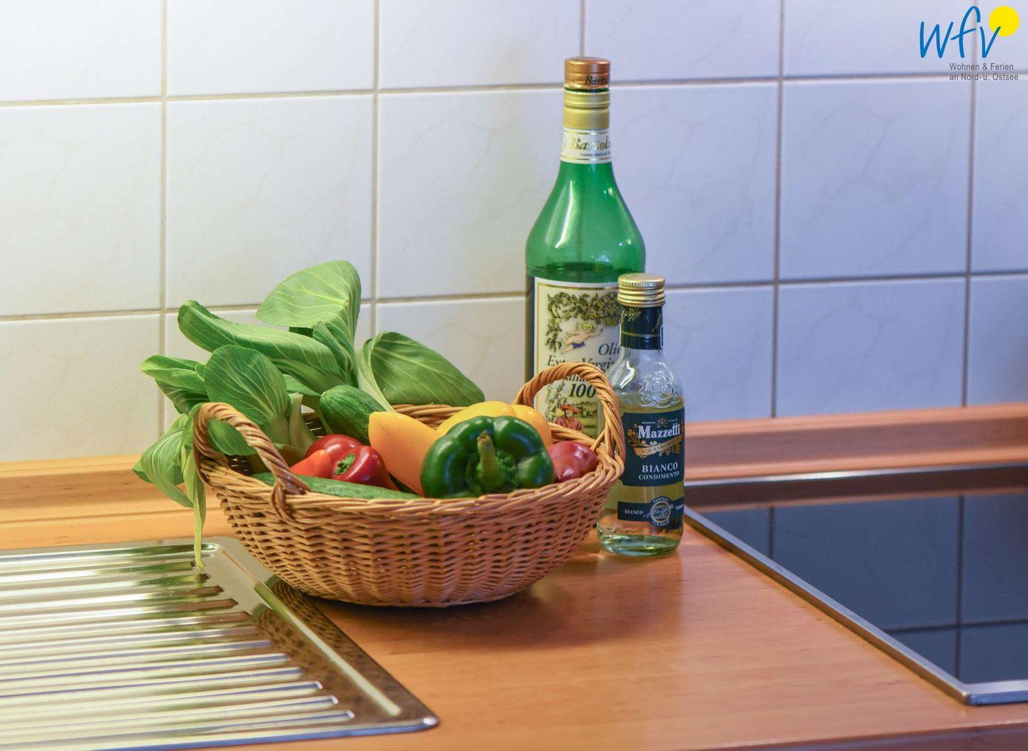Damit Sie sich in Ihrem Urlaub auf Rügen bequem selbst verpflegen können, sind beide Küchenzeilen voll ausgestattet - u.a. mit Herd, Backofen, Kühlschrank mit Gefrierfach, Mikrowelle und Geschirrspüler sowie Kaffeemaschine, Kaffee-Vollautomat (Kapseln), Wasserkocher und Toaster.