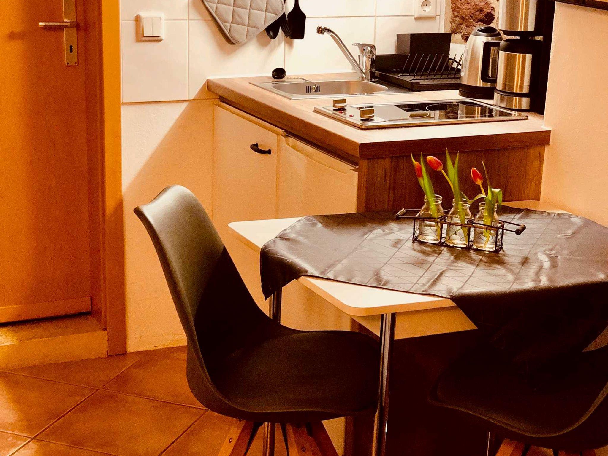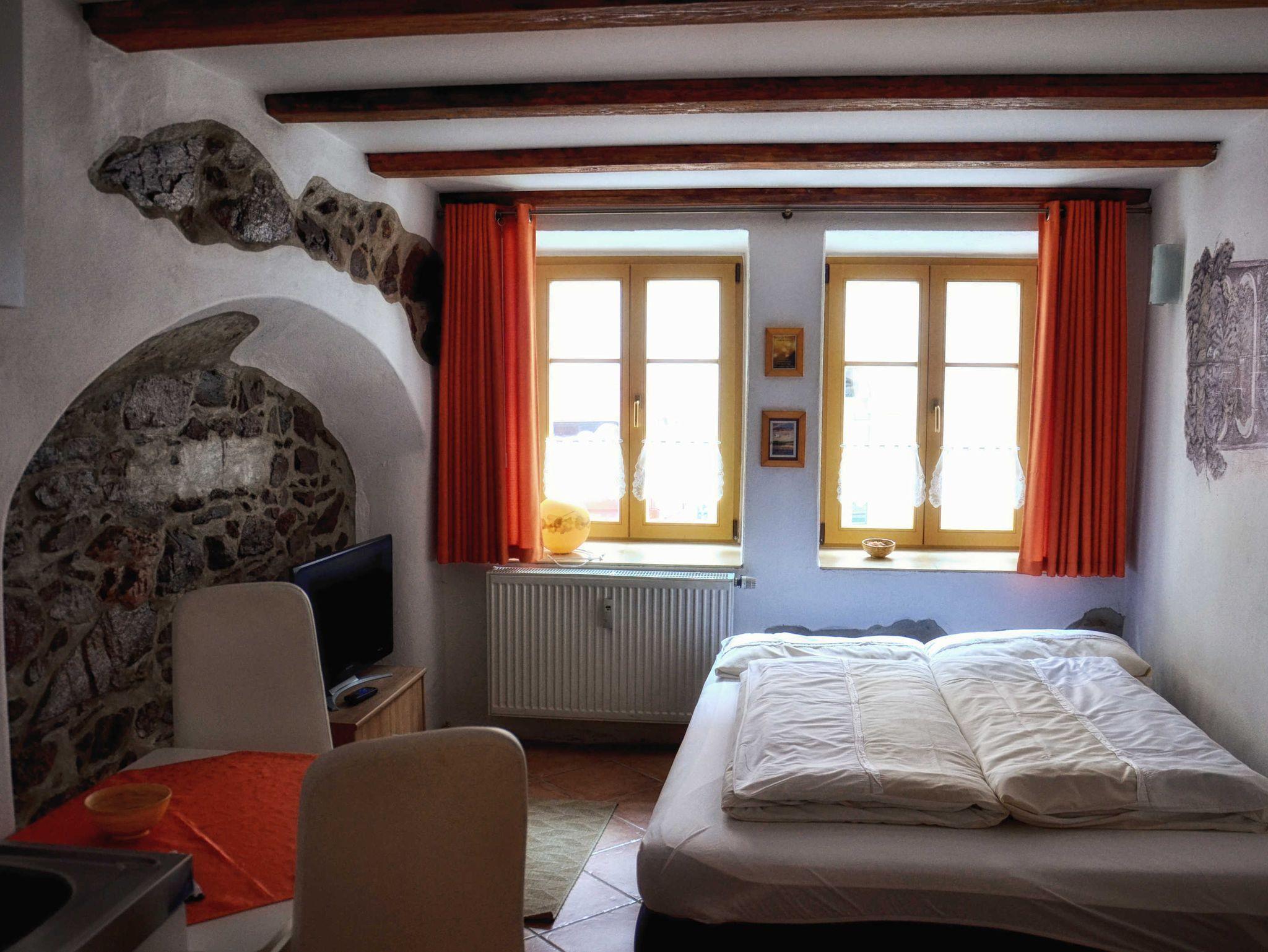 NEISSE Einraum-Apartment ist ein gemütliches Zimmer mit freigelegter historischer Mauer. Das geräumige Bad mit Dusche und der Wohn-/Schlafraum mit integrierter Singleküche bieten Unterkunft für ein bis zwei Personen. Im Sommer laden die romantischen Sitzecken im Garten des Hauses ein, einen erlebnisreichen Tag ausklingen zu lassen.
