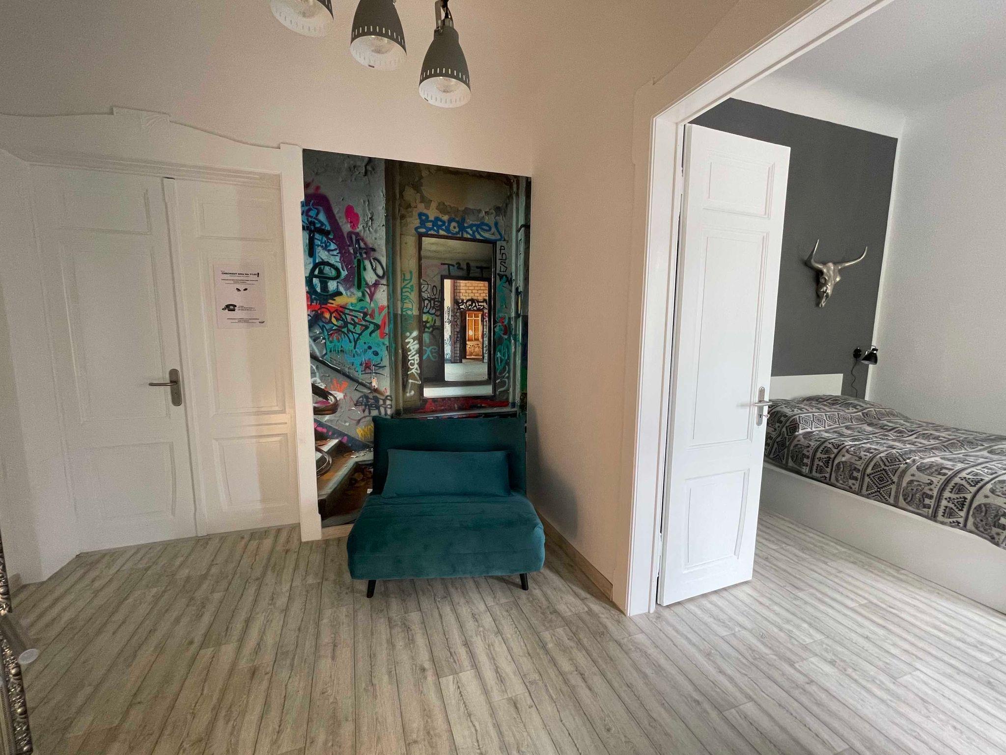 Perfekte Lage! Denn die Ferienwohnung befindet sich an der Ecke Louis Braille Straße/ Parkstraße. Louis Braille war ein französischer Blindenlehrer, ein Pionier der Blindenbetreuung und Erfinder des nach ihm benannten Punktschriftsystems für Blinde, der Brailleschrift oder kurz Braille. Die Straßenzüge sind durch Hochherrschaftliche Häuser und Altbauten gekennzeichnet. Die Parkstrasse 1 ist ein typisches Wohnhaus in geschlossener Bebauung als Eckhaus, mit Vorgarten aus dem 19-ten. Jahrhundert (1904) mit hohen Decken. Das Gebäude ist denkmalgeschützt und baugeschichtlich und städtebaulich von Bedeutung. Die Ecke wird in offenen, um die Ecke führenden Balkons aufgenommen. Im Treppenhaus befinden sich Reste bunter Bleiglasfenster, Fußbodenkacheln. Imposant auch die Hochschule Zittau/ Görlitz gegenüber und die Parkanlagen.