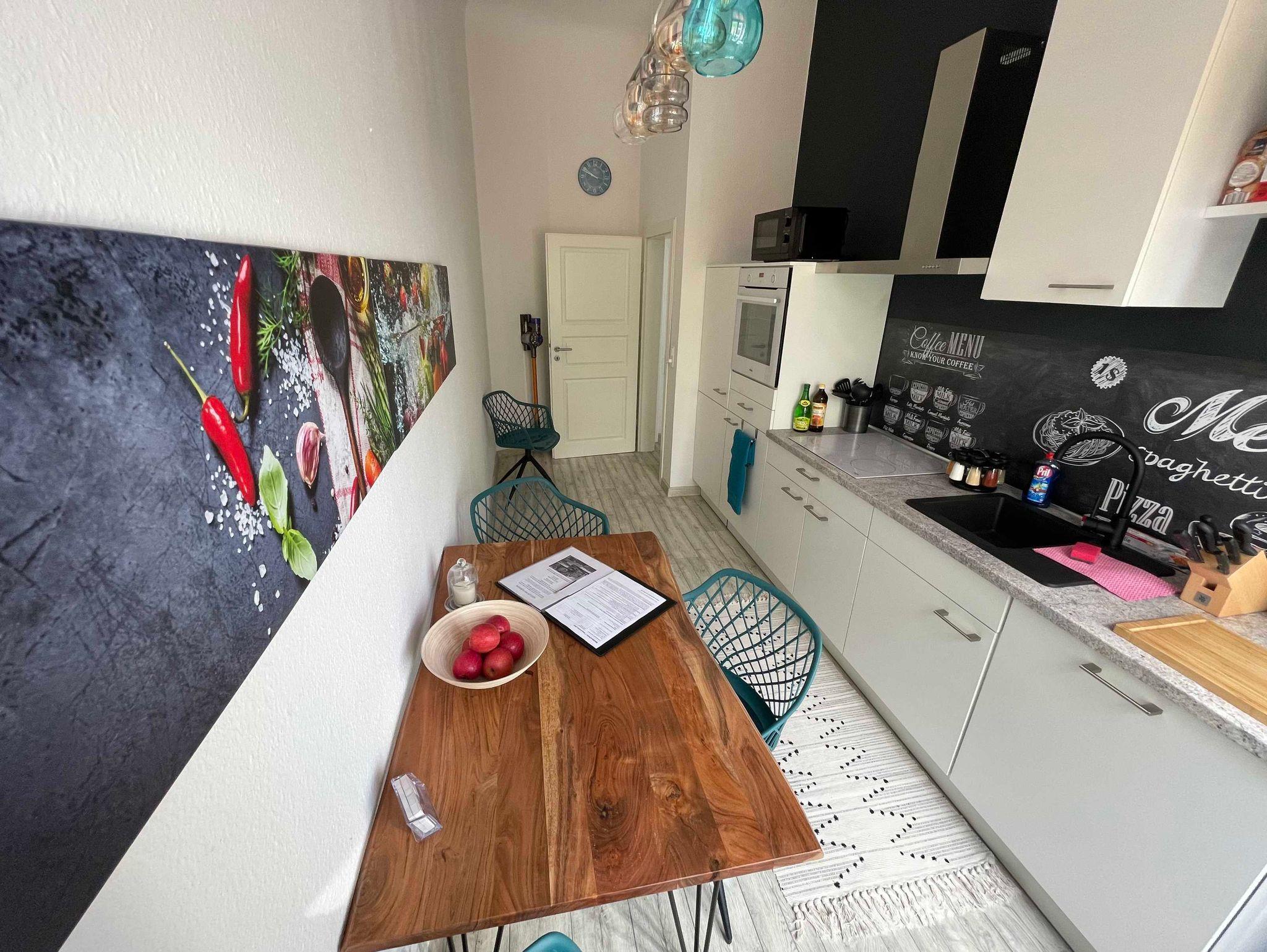 gemütliche funktionale Küche mit PREMIUM Mikrowelle/ Induktionsplatte.