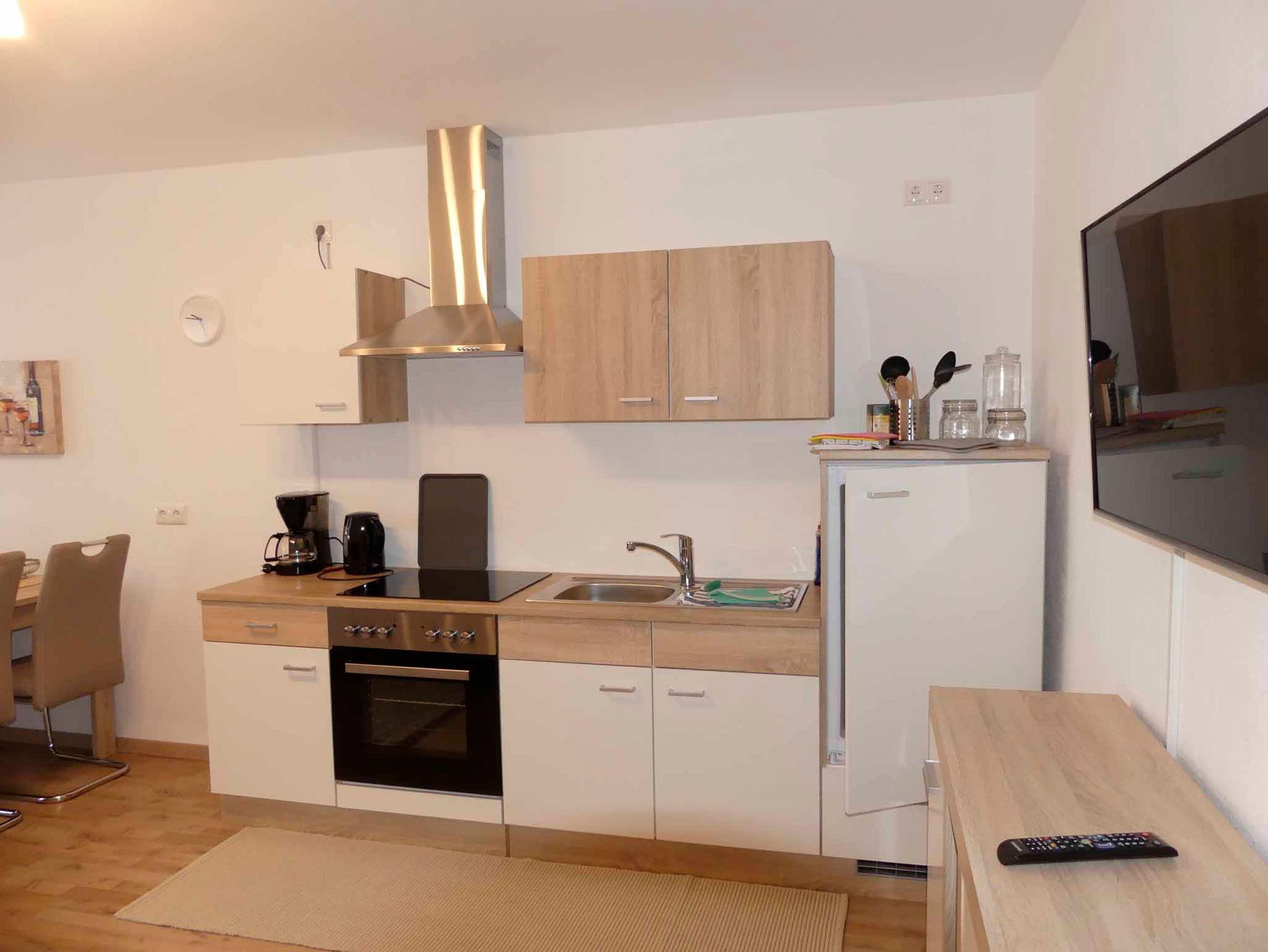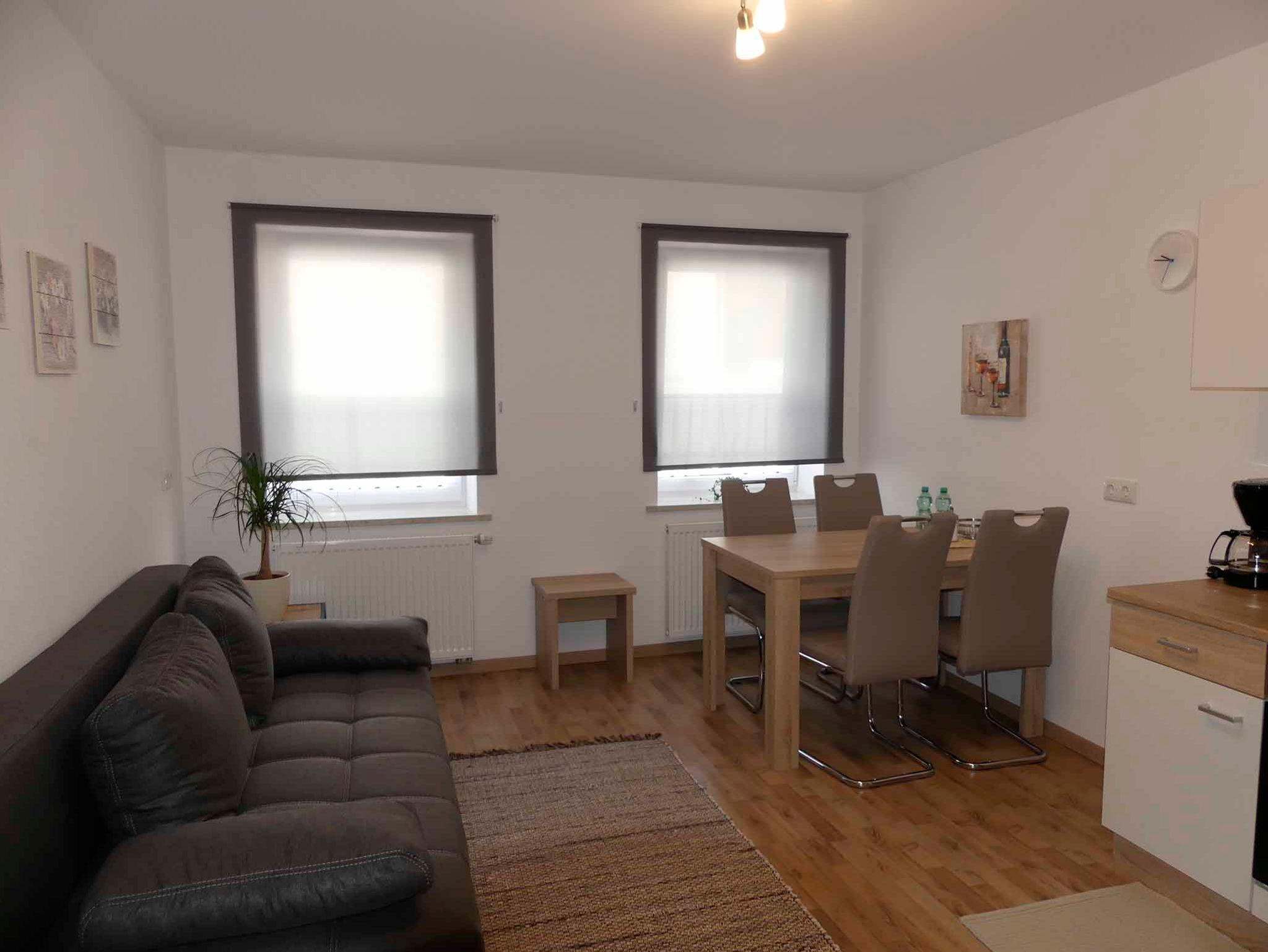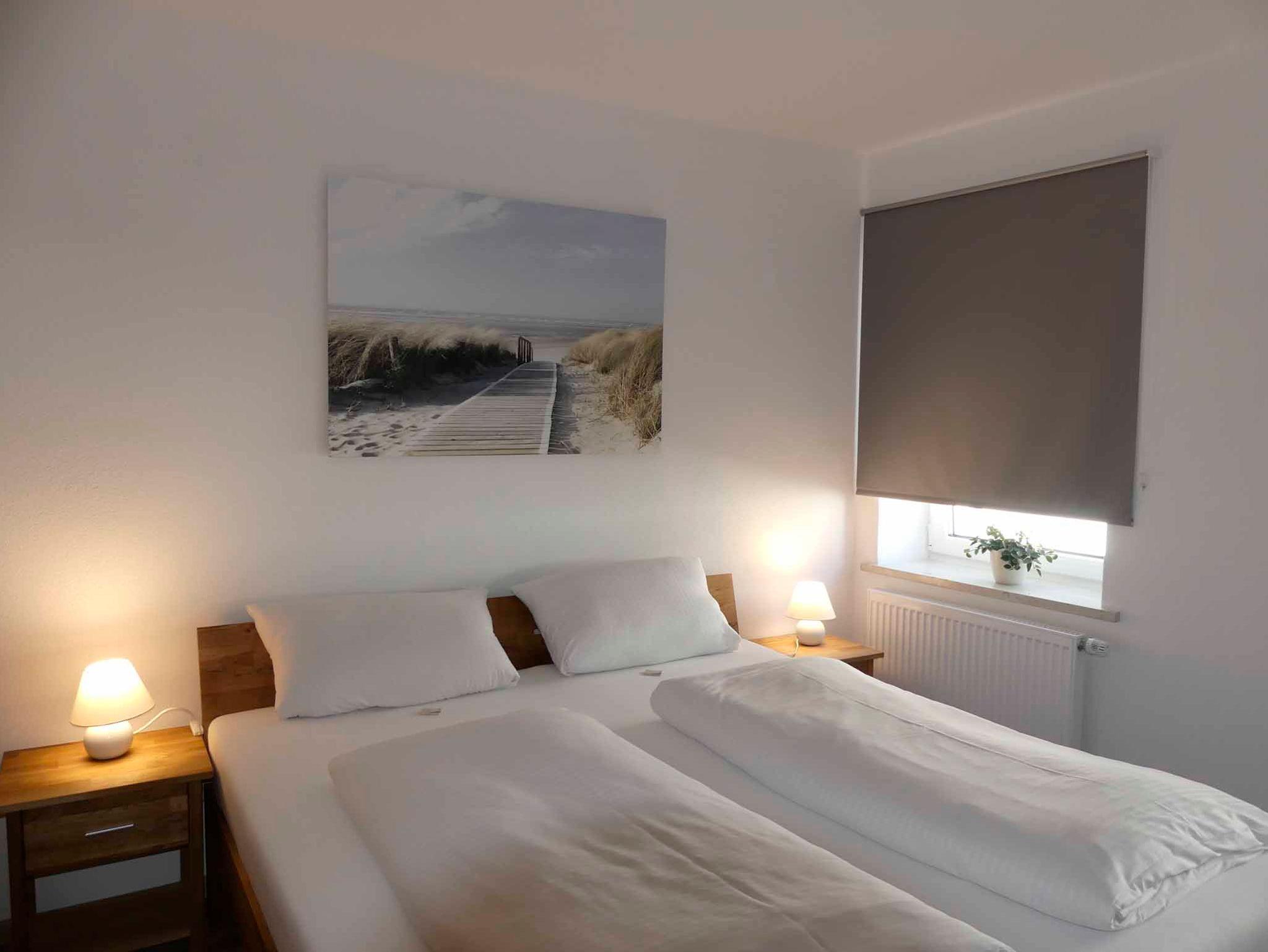 Die moderne Ferienwohnung verfügt über zwei Schlafzimmer, die jeweils mit einem Doppelbett, einem geräumigen Kleiderschrank, einer Kommode und einem Sat-TV ausgestattet sind. Wohn- und Essbereich lassen keine Wünsche offen und bieten Ihnen eine voll eingerichtete Küche mit Kühlschrank, Backofen, Ceranfeld, Mikrowelle, Kaffeemaschine und komplettem Geschirr. Am Esstisch finden vier Personen Platz. Die gemütliche Wohnlandschaft mit großem Flachbildfernseher lädt zu entspannten Abenden ein. Auf Anfrage ist die Übernachtung einer weiteren Person auf dem Schlafsofa möglich. Das Badezimmer ist mit einer ebenerdigen Dusche, einer Badewanne, einem Handtuchtrockner, Waschbecken und WC ausgestattet. Bettwäsche, Handtücher, kostenfreies WLAN und Endreinigung sind im Preis enthalten. Parkmöglichkeiten bieten öffentliche, kostenpflichtige Parkplätze in unmittelbarer Nähe. Die Ferienwohnung ist jedoch direkt mit dem PKW zu erreichen, so dass Sie ihr Gepäck bequem vor der Wohnung entladen können.