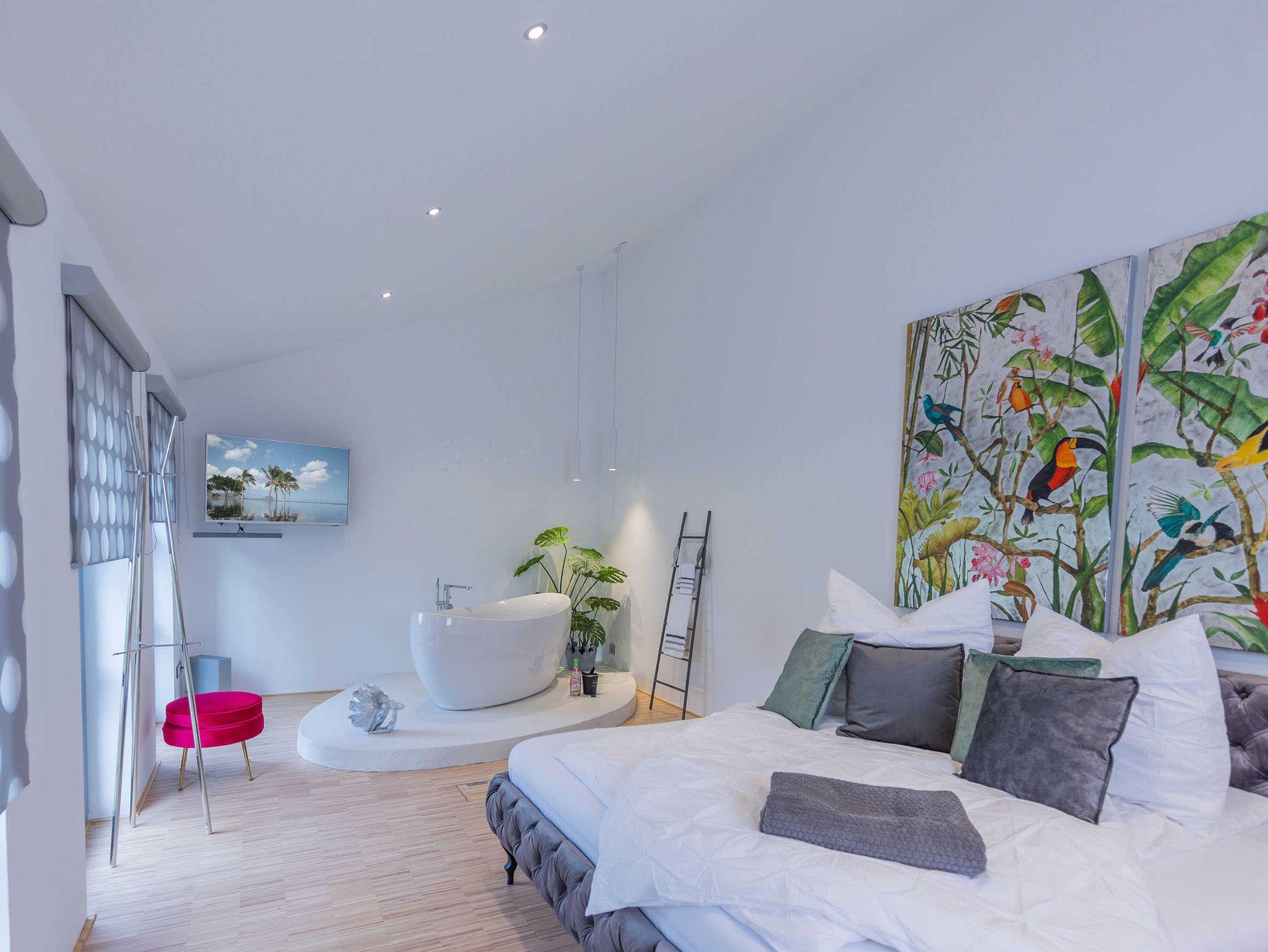 Exklusiv und gemütlich – das ist das ca. 245 qm große Luxus Wellness Loft , welches durch seine wohnlich-elegante Atmosphäre