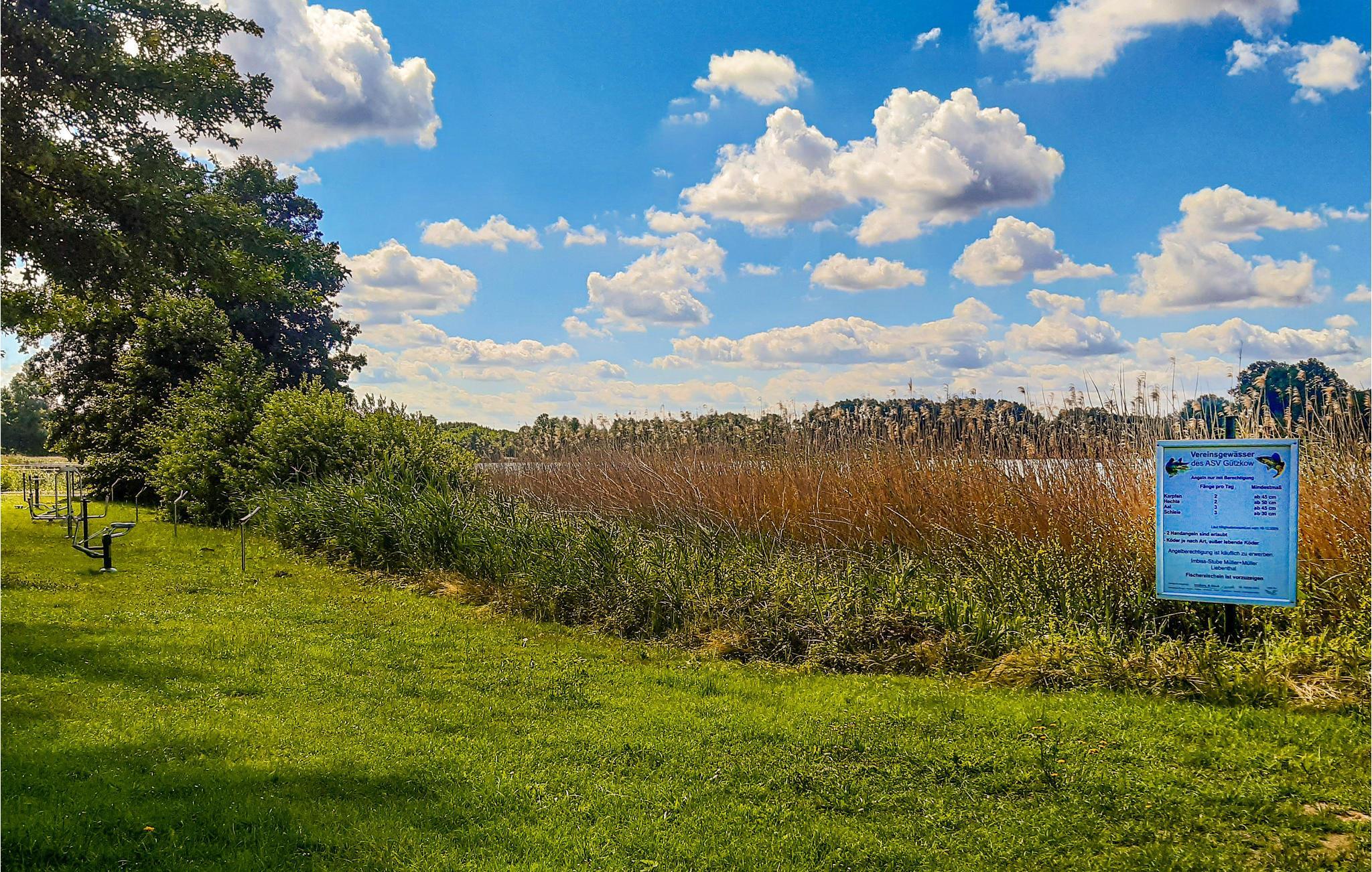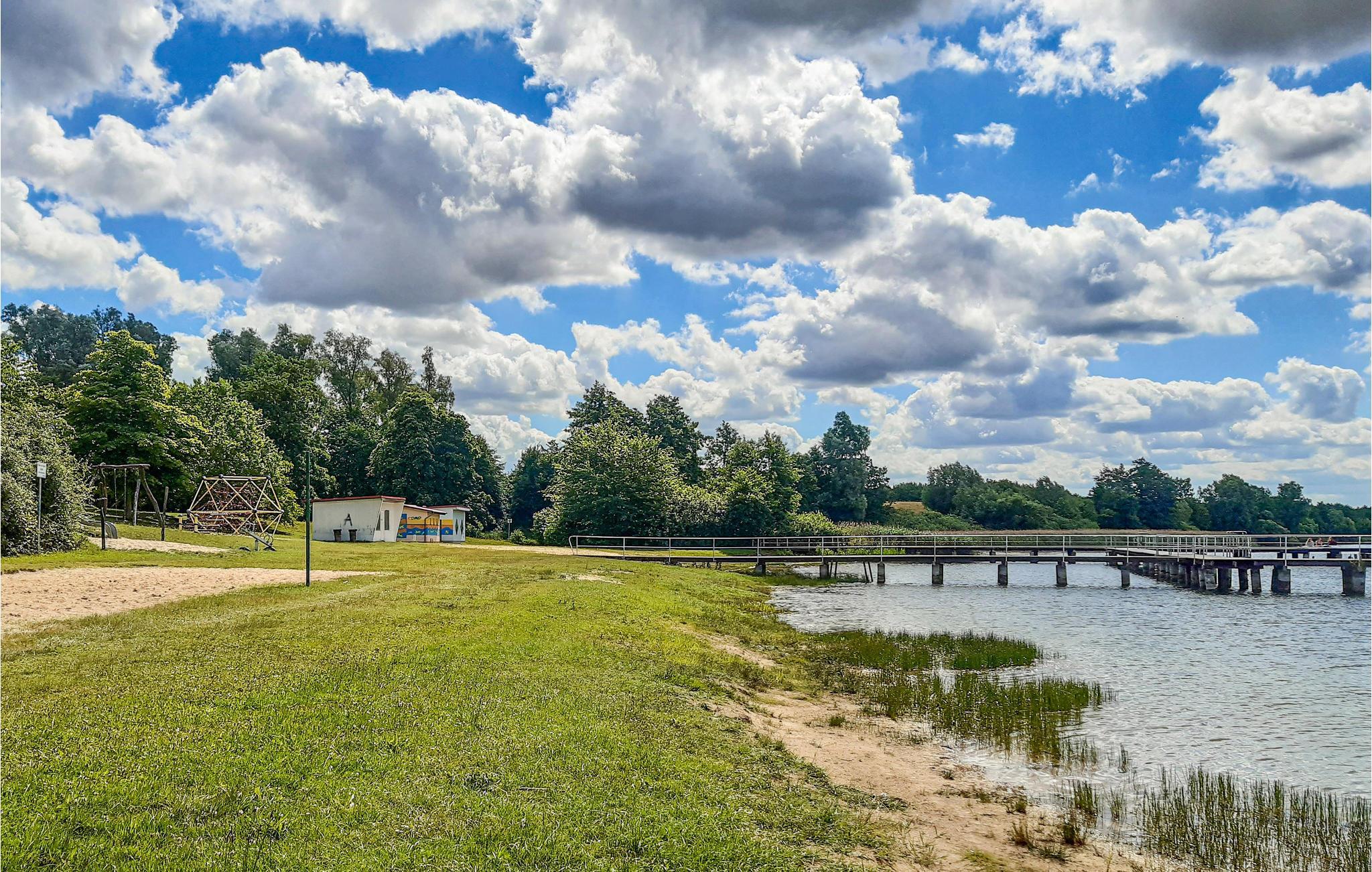 Søer, store marker, floder og kort afstand til havet - der er smukt og grønt i Mecklenburg-Vorpommern. Her kommer I til at bo i Peenetal tæt på Kosenow-søen, hvor der er fantastiske forhold til at bade og nyde solen. Uden for huset finder I en skøn terrasse, hvor I kan sætte jer med dagens måltider, mens I kigger direkte ud på søen.