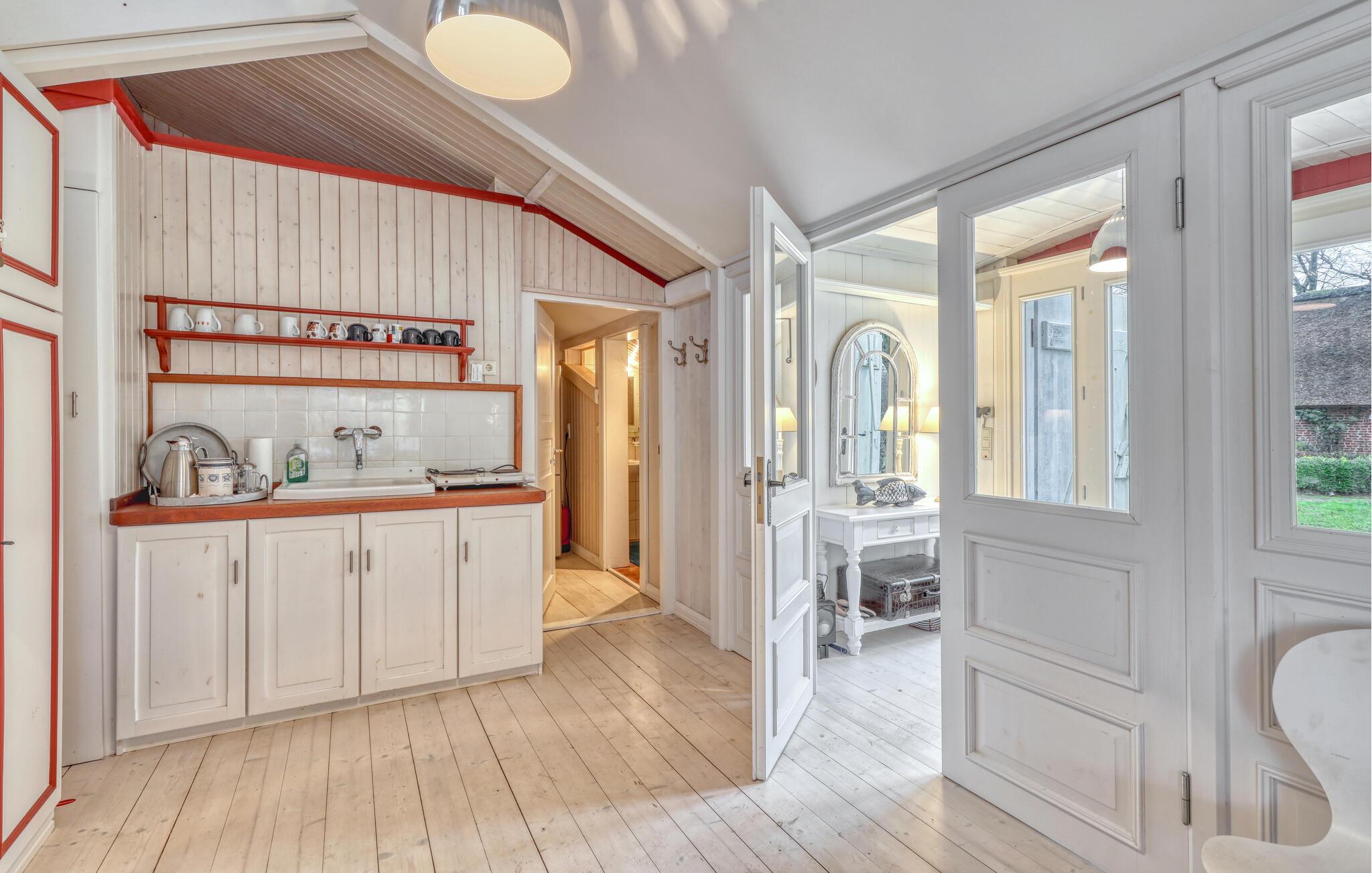 Dette historiske hus er ikke kun noget særligt på grund af charmerende atmosfære, men også den beliggenhed nær Vadehavet. Huset er det ideelle tilflugtssted, hvis I ønsker at tilbringe jeres ferie i et karakterfuldt hjem med hyggelige møbler i afdæmpede farver. Den åbne stue indbyder til hyggelige timer med at snakke eller nyde en kop kaffe.