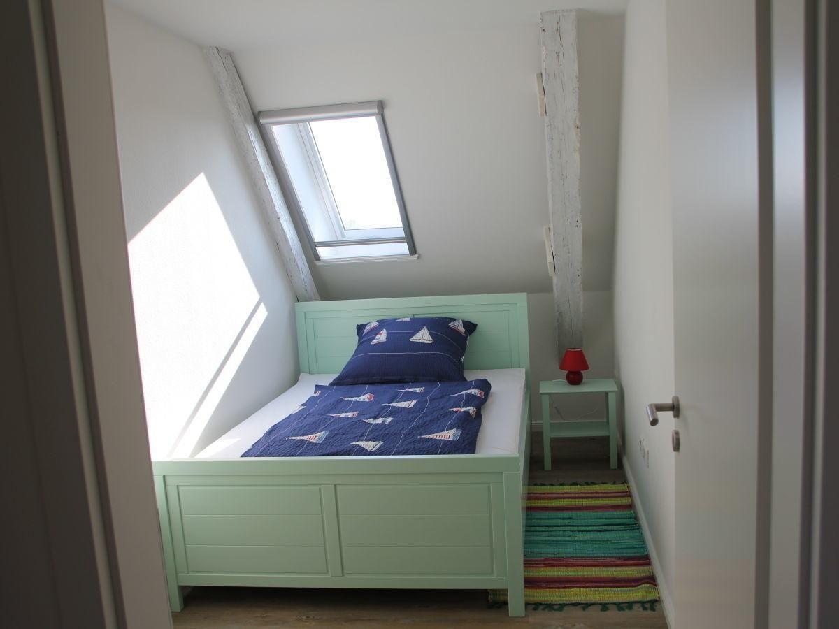 Die 75 m² große, gemütlich eingerichtete Ferienwohnung "Wind" für bis zu 3 Personen befindet sich im ersten Stock des Gebäudes in Galmsbüll an der Nordsee.