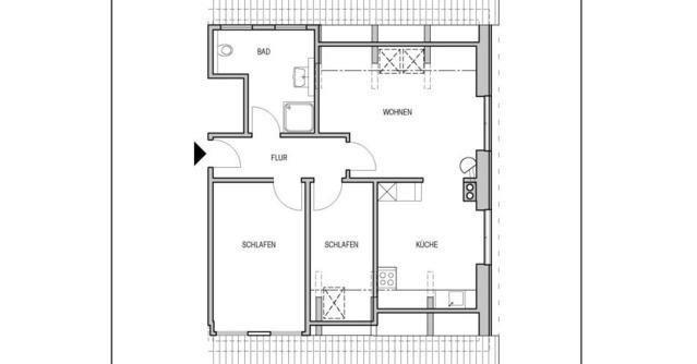 Das Objekt verfügt über 1 Wohnzimmer, 1 Küche mit Essbereich, 2 Schlafräume und 1 Duschbad.
