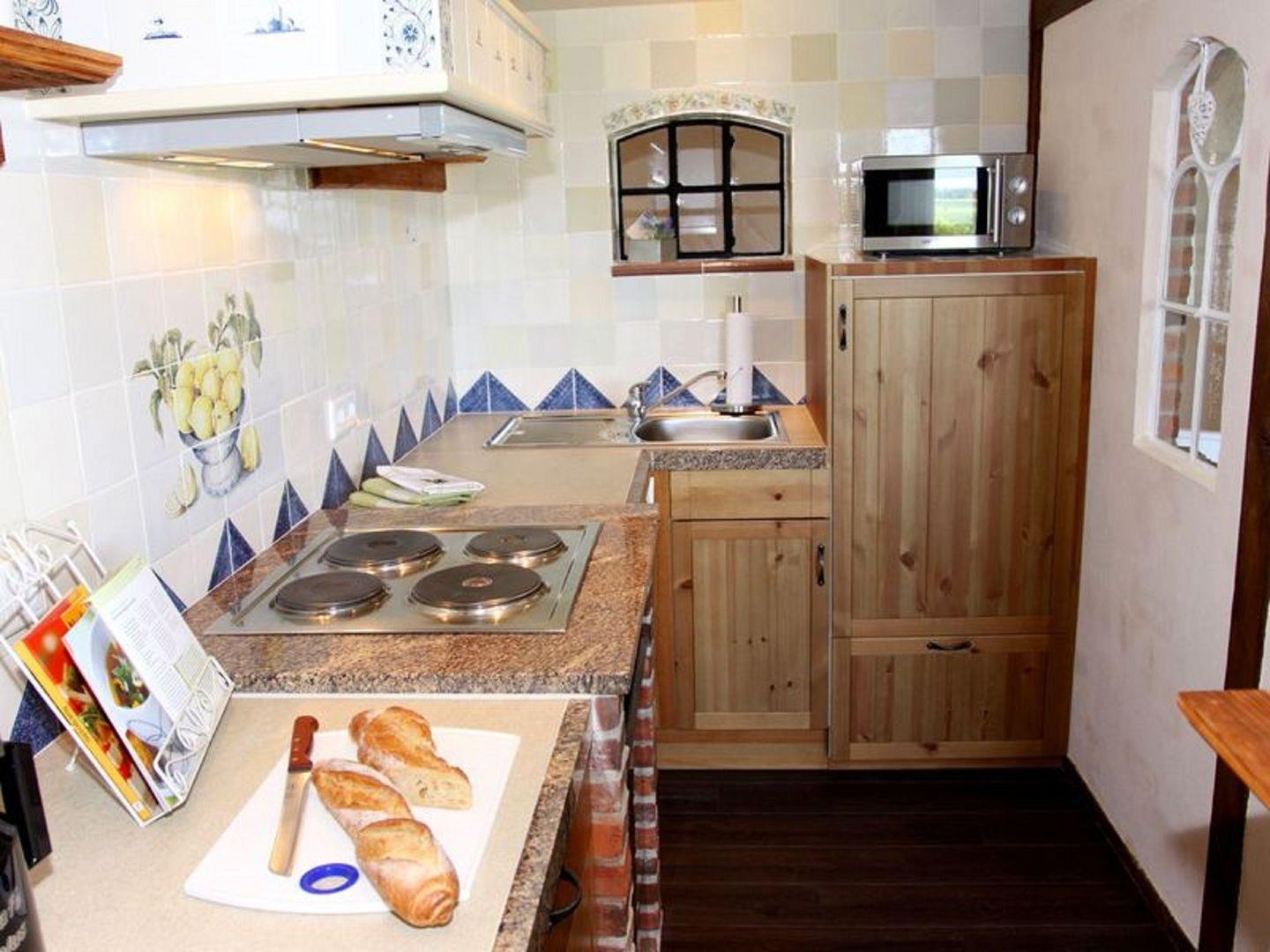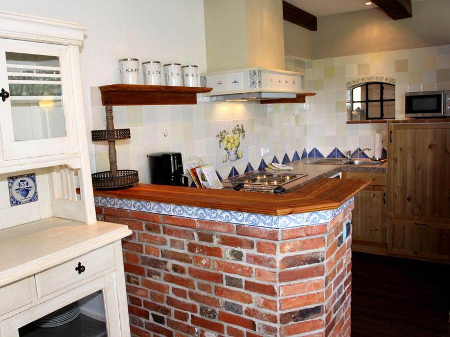 Die gut ausgestattete Küche ist separat und trägt zur hohen Funktionalität dieser Unterkunft bei. Hier finden Sie alle notwendigen Küchengeräte wie einen Herd mit vier Platten, einen Backofen, eine Spülmaschine sowie ein Kühlschrank. Zusätzlich stehen Ihnen zahlreiche Küchenutensilien, Geschirr und Besteck zur Verfügung, um selbst leckerste Mahlzeiten zuzubereiten. Ein angrenzender Essbereich mit einem großen Esstisch ermöglicht es Ihnen, gemeinsam zu speisen und gesellige Runden zu genießen. In der Wäschestation befindet sich ein Gefrierschrank