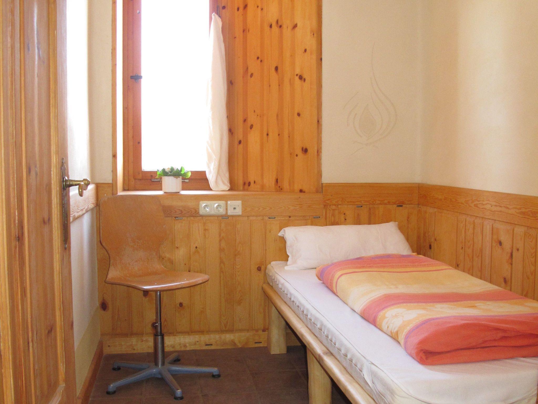 Sie buchen eines von 5 kleinen Einzelzimmern und nutzen gemeinsam mit den anderen Gästen das Bad und die Küche. Ein großer Lehmofen sorgt für Wärme in der Küche, ein Badeofen für warmes Wasser.
