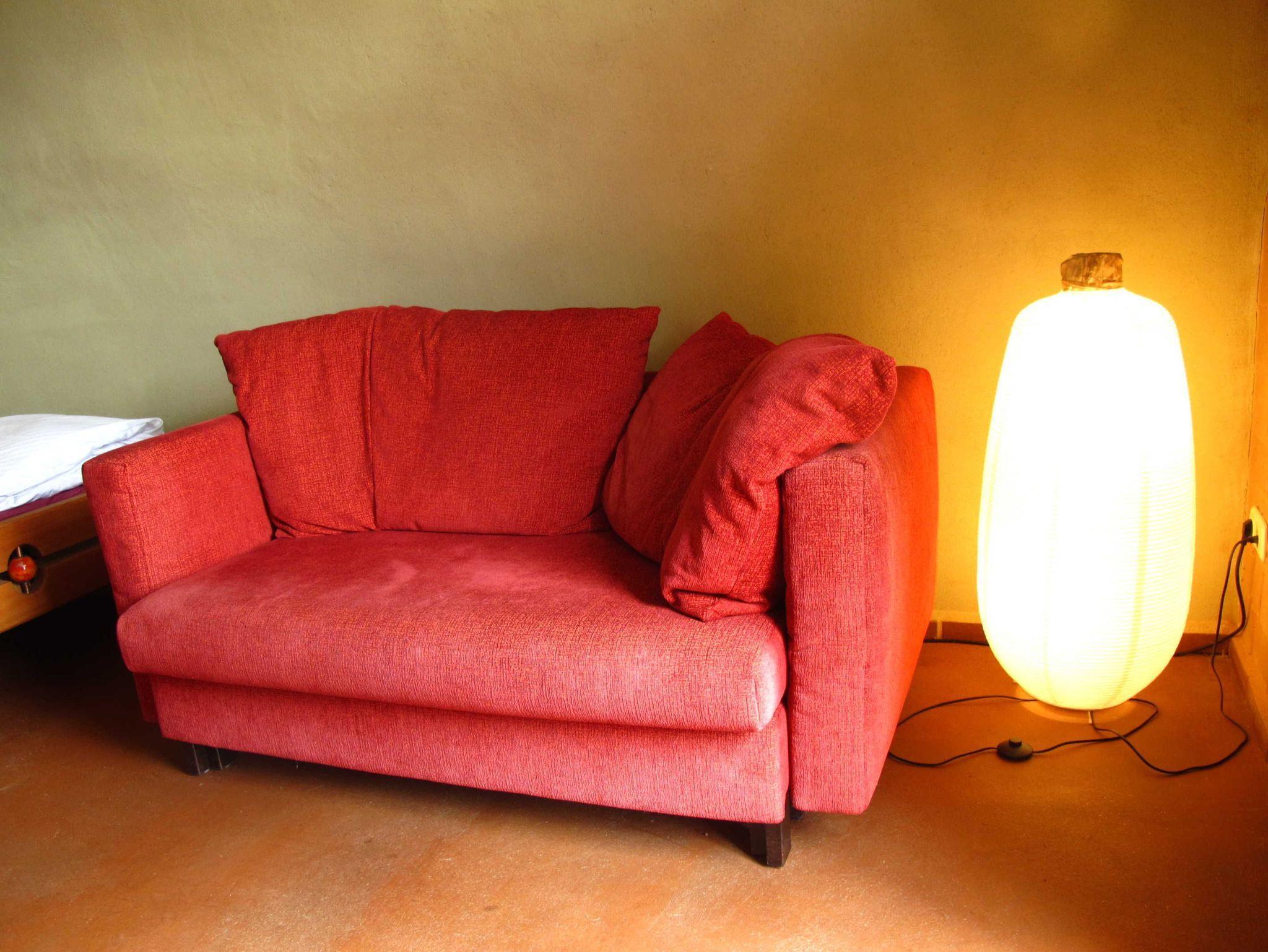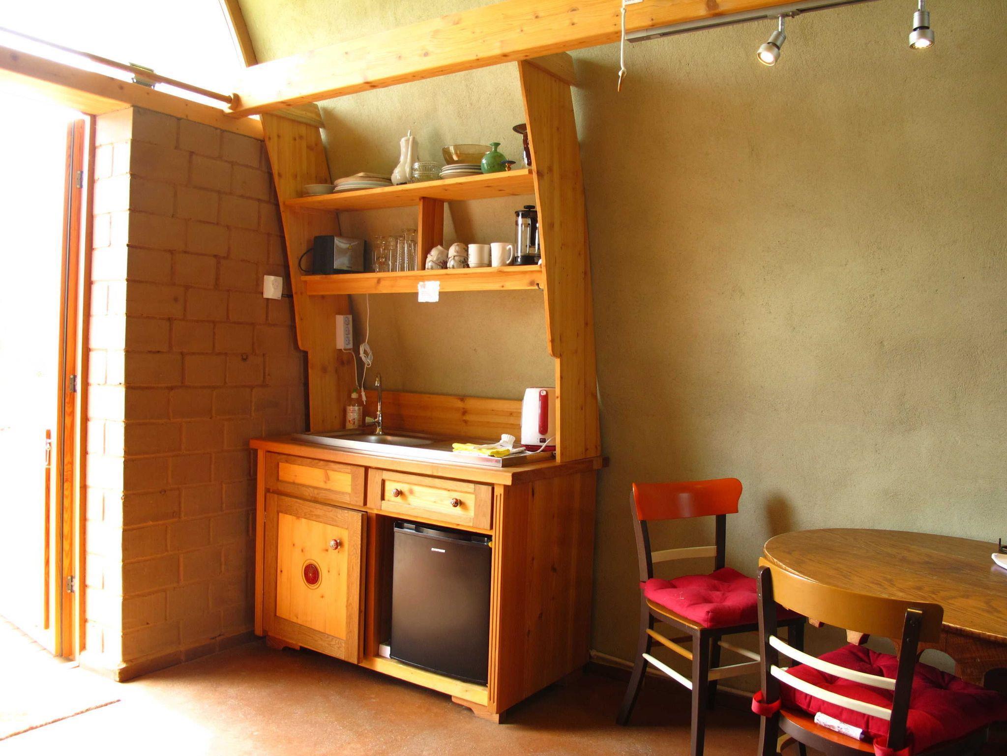 Die Unterkunft ist einfach ausgestattet, denn die Natur steht bei uns im Vordergrund. Die Wände sind mit Lehm verputzt, der Fußboden wurde mit Kalk hergestellt. Die Innenwände sind aus Lehmsteinen errichtet. Warme, aufeinander abgestimmte Naturfarben geben dem Raum eine fast mediterrane Atmosphäre, in der sich Gäste sehr wohl fühlen.
