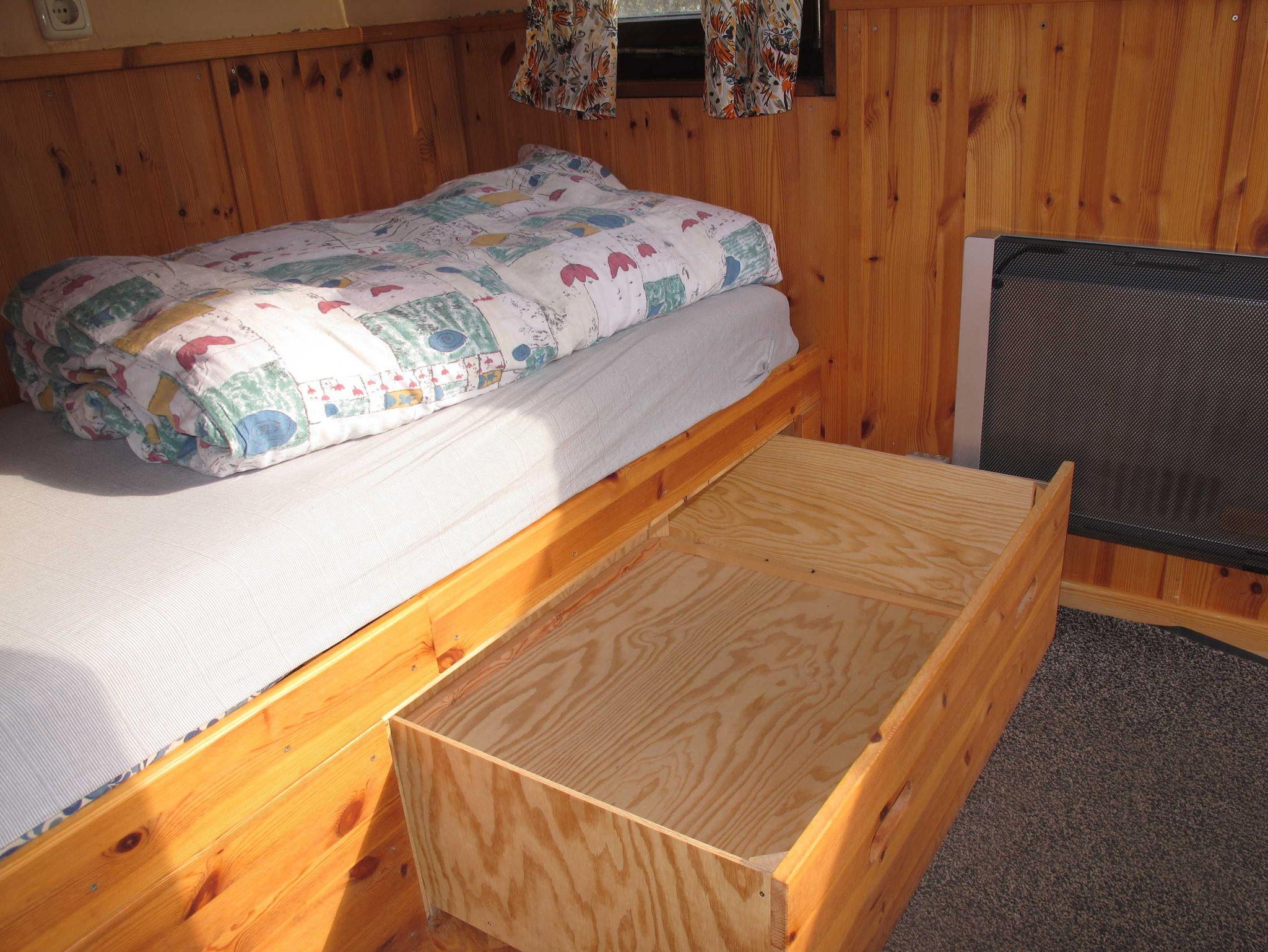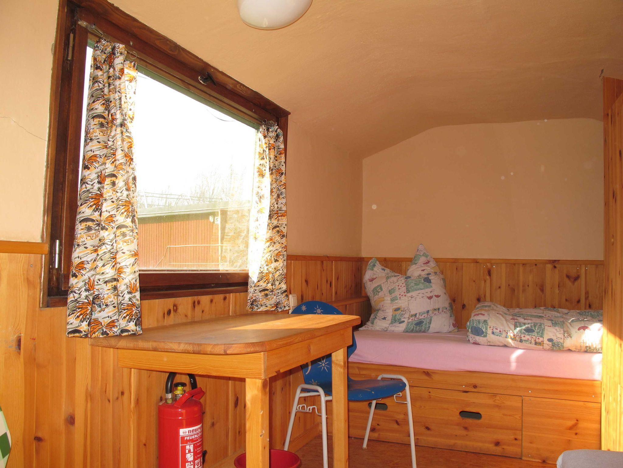 Unser Wohnwagen 1 ist ca. 8m² groß, mit zwei Betten ausgestattet und mit einer Elektroheizung beheizbar.