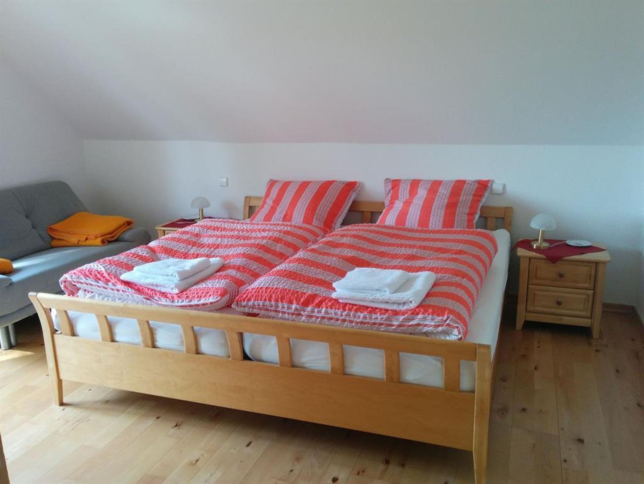 Die weitläufige, helle Wohnung mit 120 m² umfasst im ersten Stock zwei Doppelschlafzimmer, ein Bad, Gäste-WC, eine separate Küche sowie ein großes Wohnzimmer mit Esstisch. Im gemütlichen Spitzboden stehen vier Einzelbetten zur Verfügung.