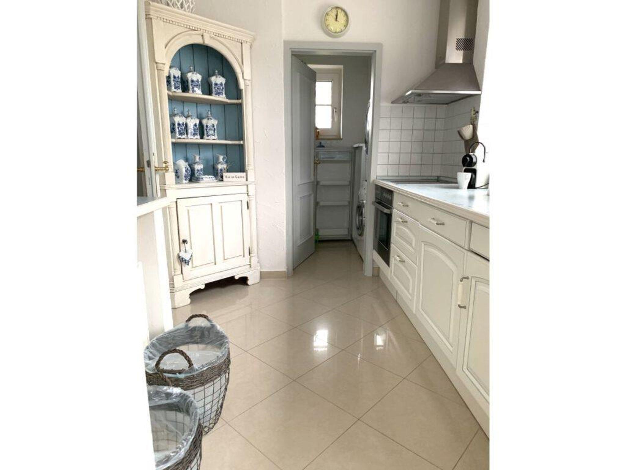 Wohn-Essbereich mit offener Küche, ausgestattet mit Cerankochfeld, Geschirrspülmaschine, Backofen, Wasserkocher, Toaster, Kaffeemaschine und Mixer. Einen großen Kühlschrank mit Gefrierfach, Mikrowelle, Waschmaschine und Trockner, Bügelbrett und Bügeleisen finden Sie zusätzlich im daneben liegenden Hauswirtschaftsraum.
