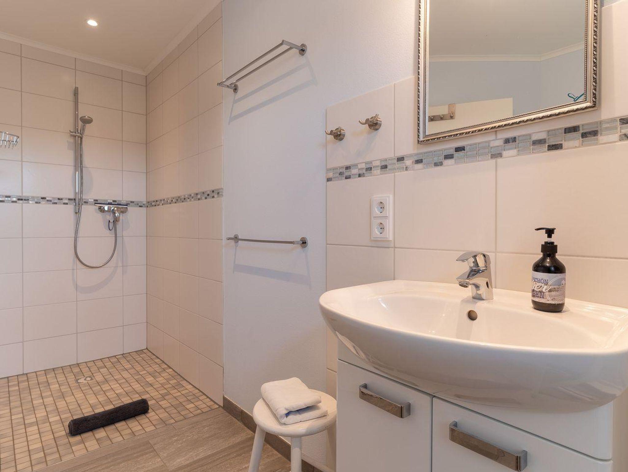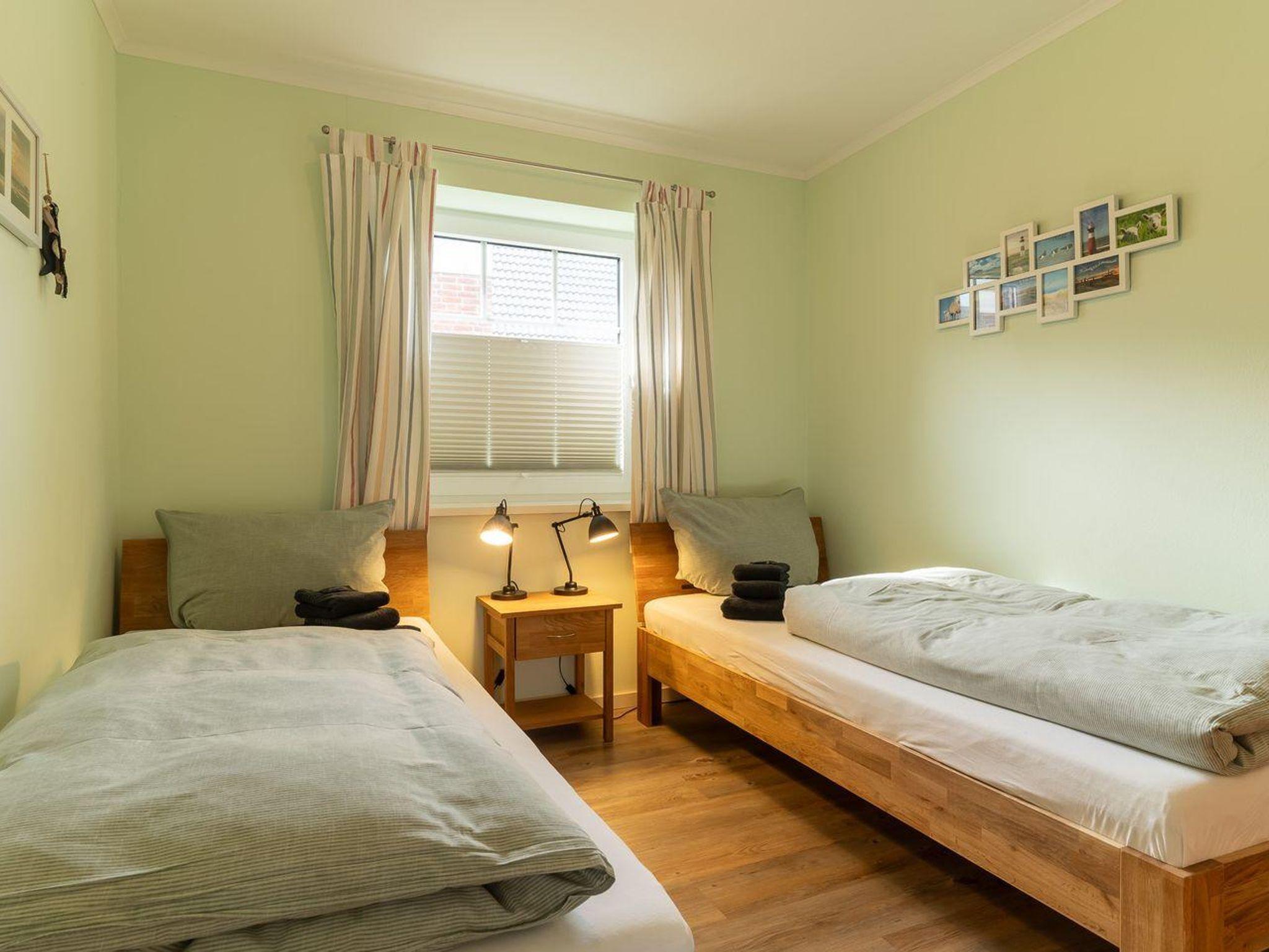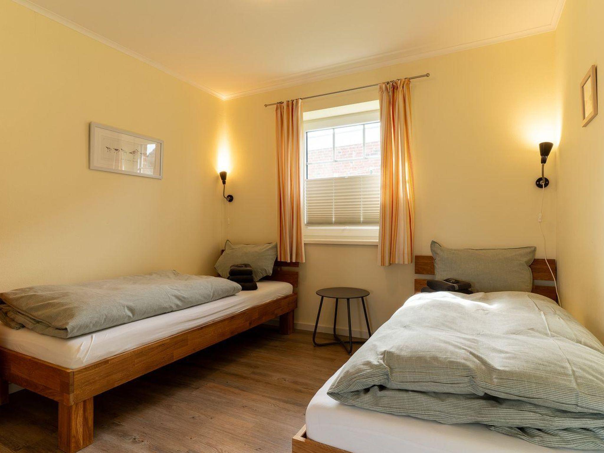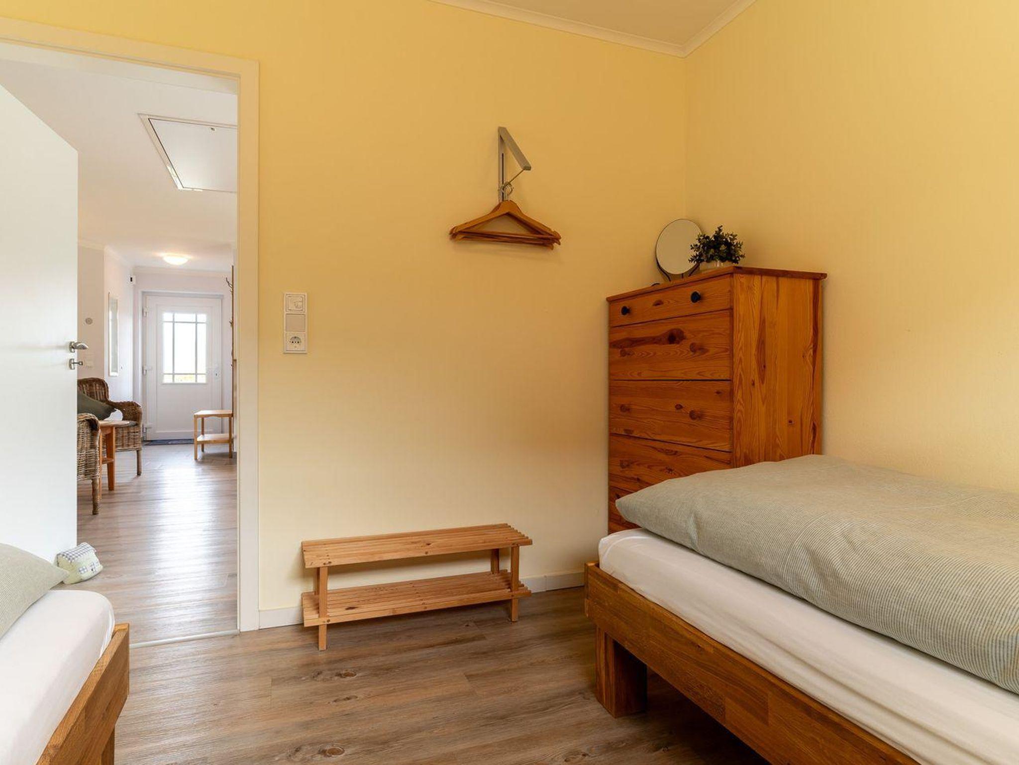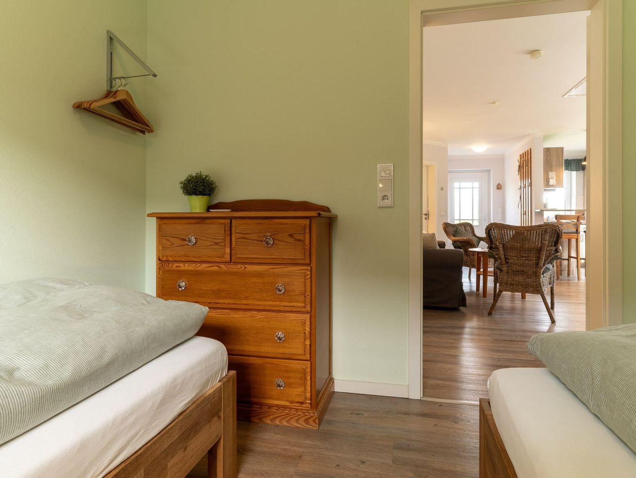 Unsere barrierefreie Wohnung wurde speziell für Ihr Wohlbefinden gestaltet. Der Hauseingang, der Zugang zur Terrasse und das Badezimmer sind rollstuhlgerecht und bieten Komfort für alle Gäste. Die Wohnung verfügt über zwei separate Schlafzimmer, jedes mit zwei Einzelbetten, die auf Wunsch zu einem Doppelbett zusammengestellt werden können. Im gemütlichen Wohnraum finden Sie einen Flachbild-Sat-TV und ein Radio für entspannte Abende.