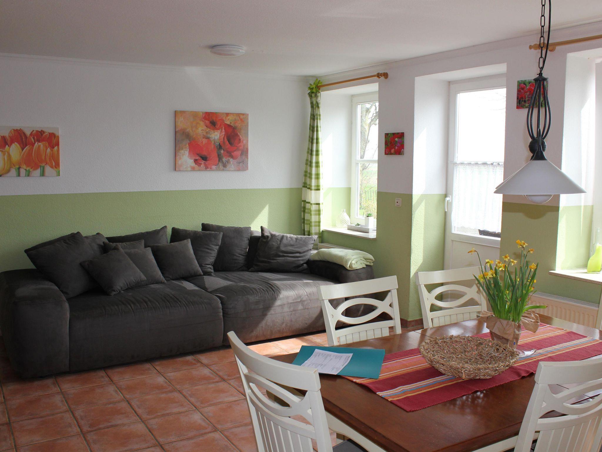 Im Erdgeschoss befindet sich der der Eingangsbereich mit Garderobe, 1 Gäste-WC und der gemütliche Wohnraum mit Sat-TV, Sofa, Essgruppe und der integrierten, komplett ausgestatteten Küchenzeile mit Geschirrspülmaschine.