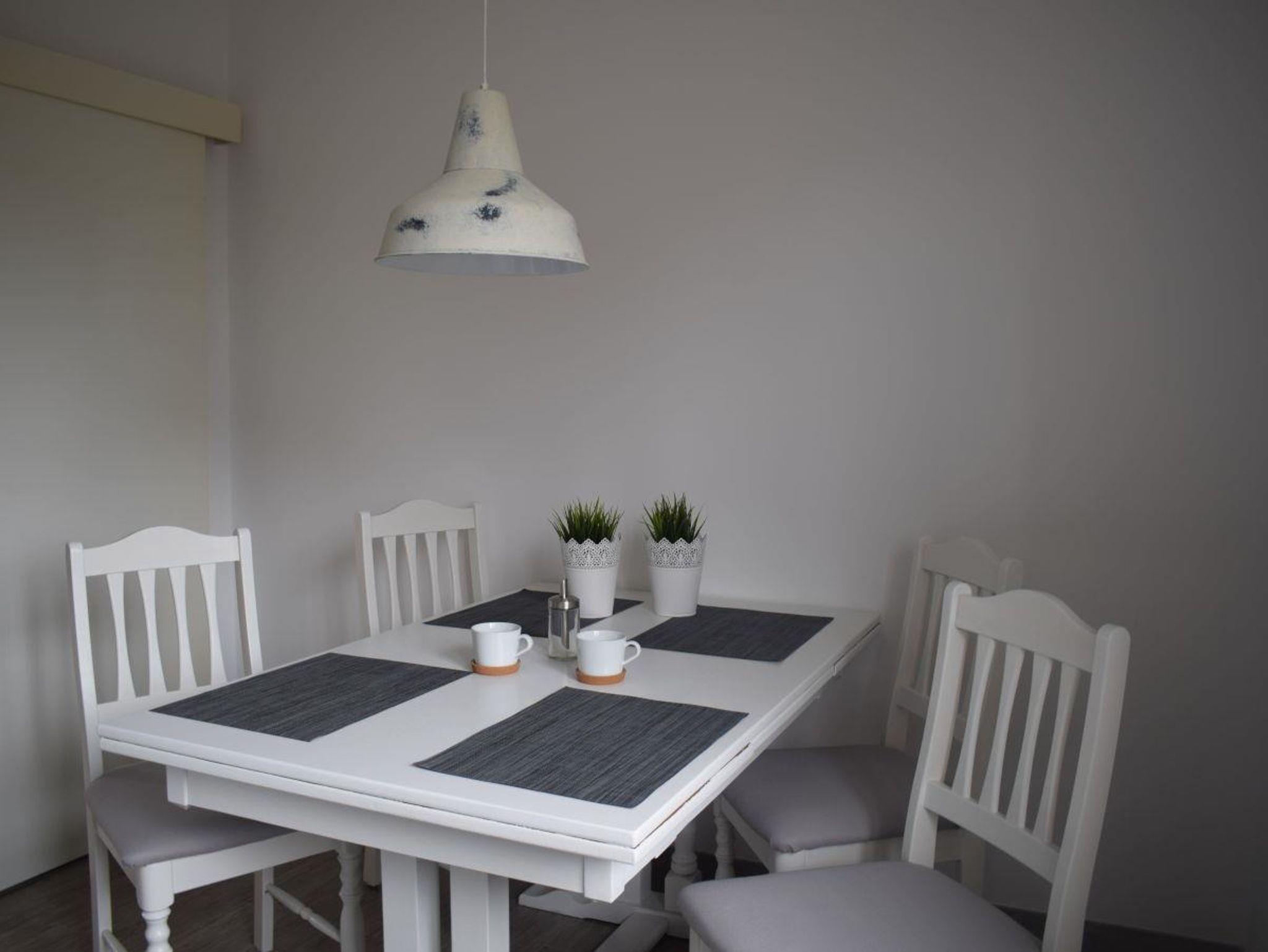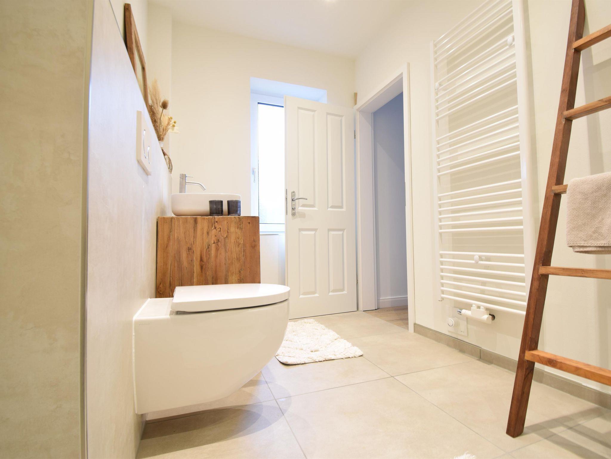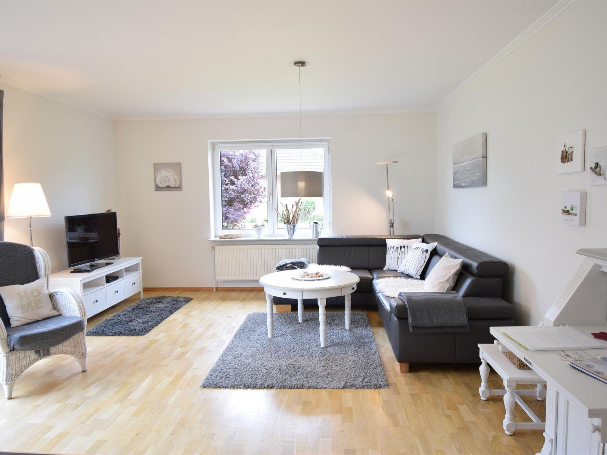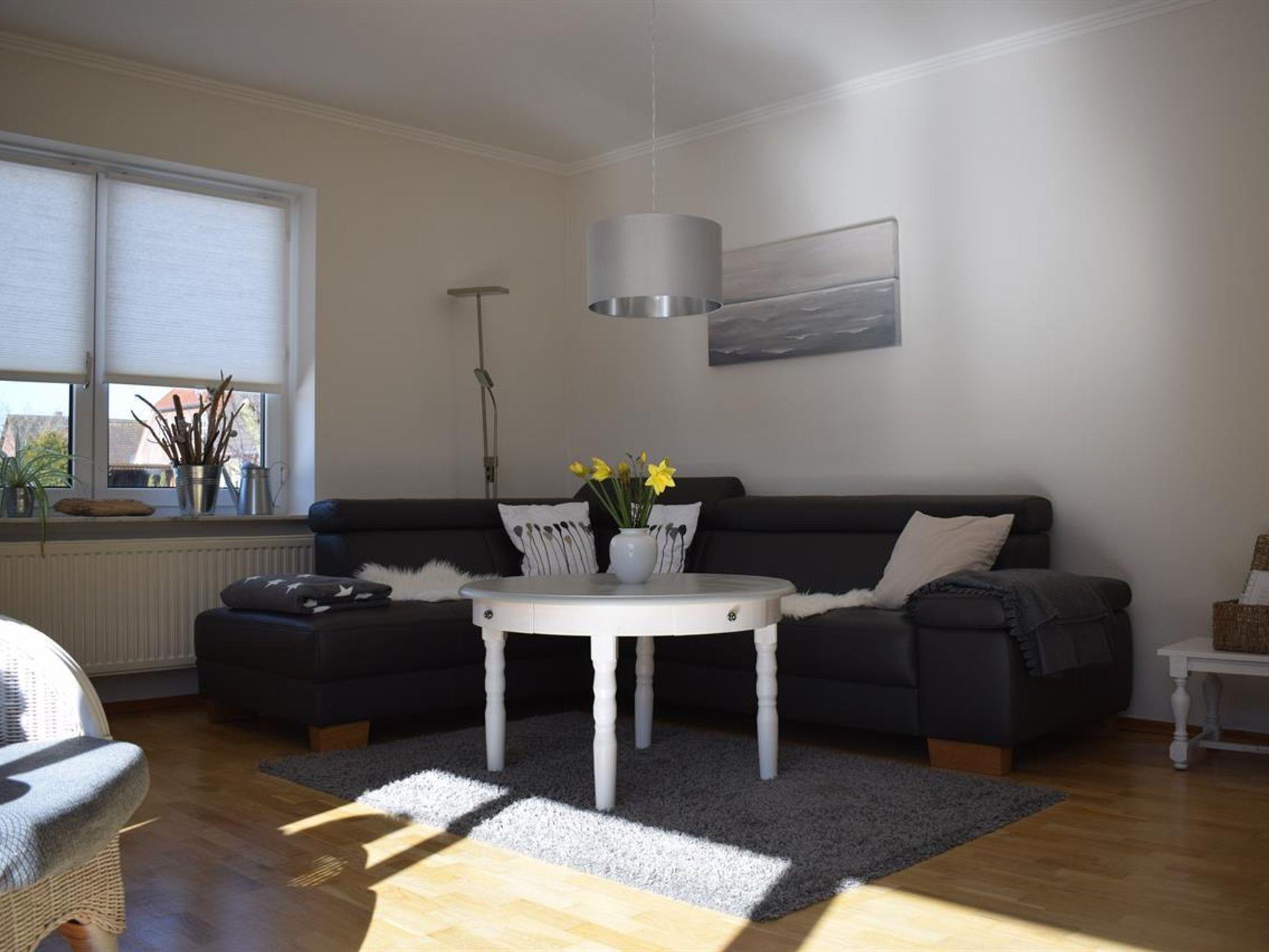 Im Wohnzimmer bietet das schwarze Ledersofa genügend Platz, um es sich gemütlich zu machen. In den beiden Schlafzimmern gibt es jeweils ein Doppelbett in der Größe 180x200 cm. WLAN ist natürlich vorhanden.