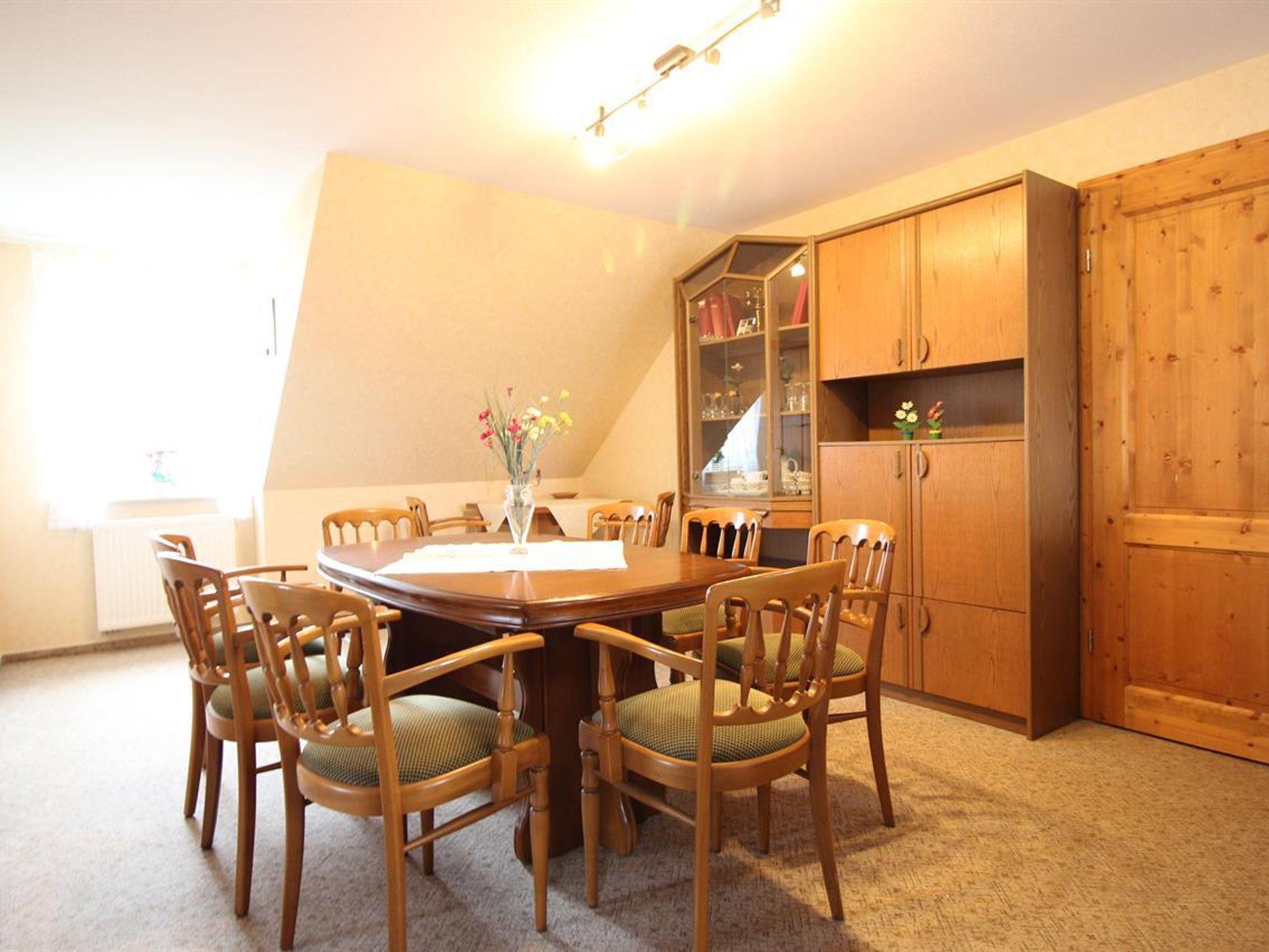 Im Wohnzimmer befindet sich der Essbereich und Satelitten-TV ist vorhanden.