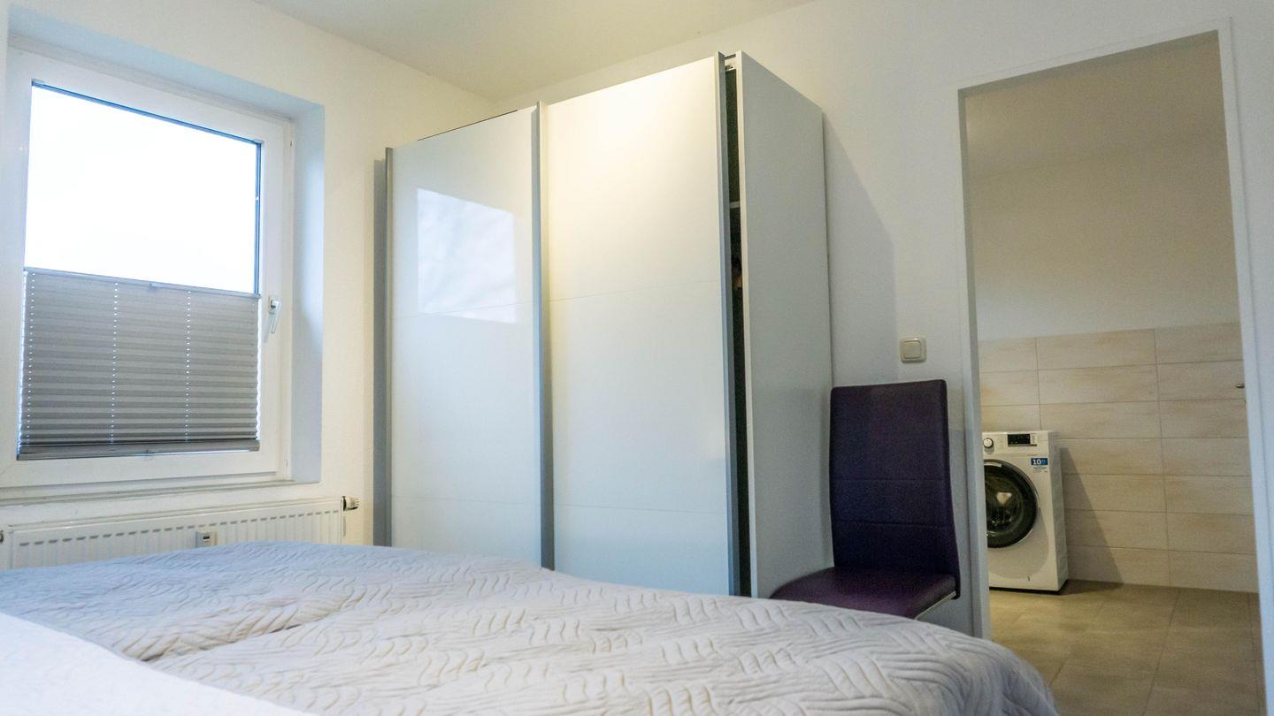 Schlafzimmer mit Doppelbett ( 2 x 90 x 200 cm) und Kleiderschrank