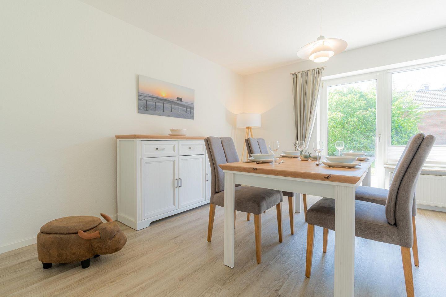 Die 2020 mit viel Liebe zum Detail renovierte Ferienwohnung im Erdgeschoss bietet einen idealen Rückzugsort für Ihren Urlaub. Hier können Sie nach einem erlebnisreichen Tag am Strand die Seele baumeln lassen.