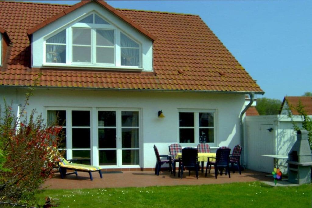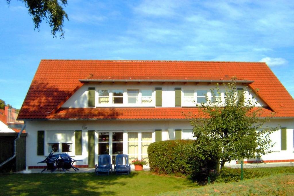 Din base på Rügen for at udforske øen og nyde masser af plads til dig og din familie eller venner: en ferie i et 123 kvm stort dobbelthus til 6-8 personer i 4-stjernet kvalitet med pejs, moderne køkken, carport og parkeringsplads samt satellit-tv - du vil ikke gå glip af noget. Fire soveværelser, herunder tre dobbeltværelser, og en hems. Internet/Wi-Fi er valgfrit tilgængeligt efter anmodning! Maksimalt én hund (mod et ekstra gebyr) er tilladt pr. lejlighed efter anmodning. Flere hunde er ikke tilladt, og det samme gælder meget store, farlige dyr eller kamphunde. Hunde er ikke tilladt i højsæsonen fra 5. til 18. august. Lejligheden er designet til vores gæsters højkvalitetsrekreation - vi accepterer ikke typiske grupperejser (dimissionsfester, skolerejser eller bowlinggrupper).