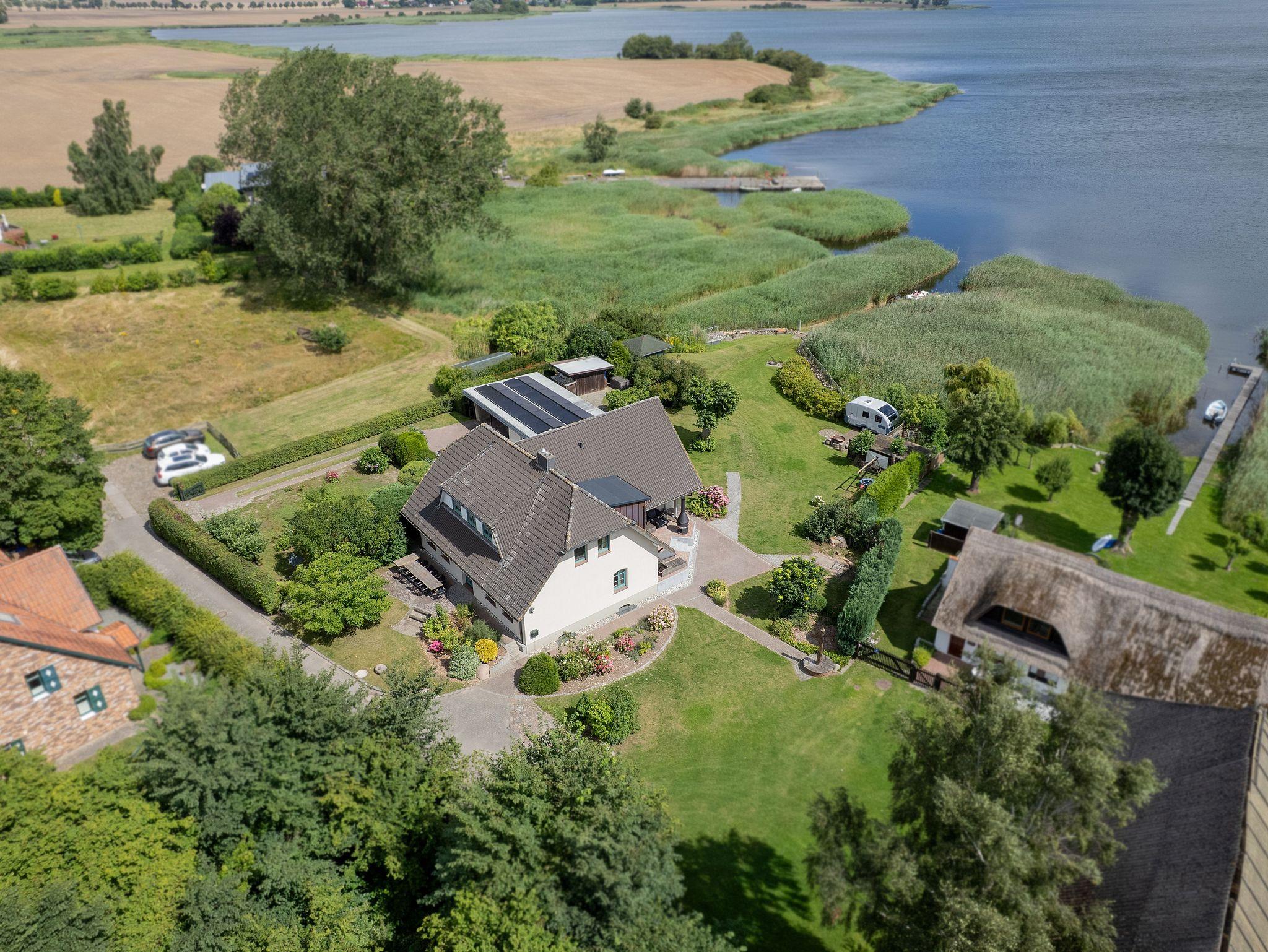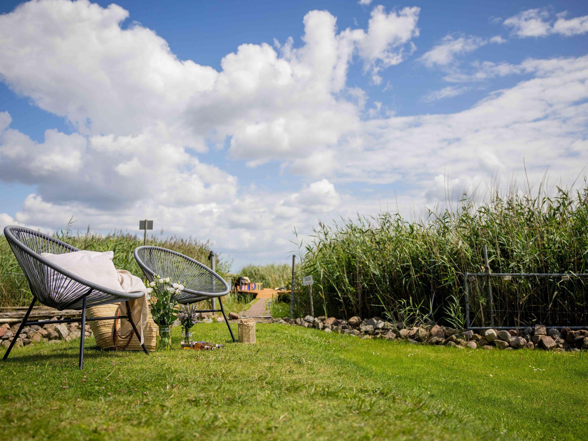 Genießt den atemberaubenden Ausblick auf die Boddenlandschaft von einer der Terrassen, springt vom eigenen Steg ins Wasser, stecht mit dem Tretboot in See oder entspannt am Kamin oder an einer der Feuerstellen.