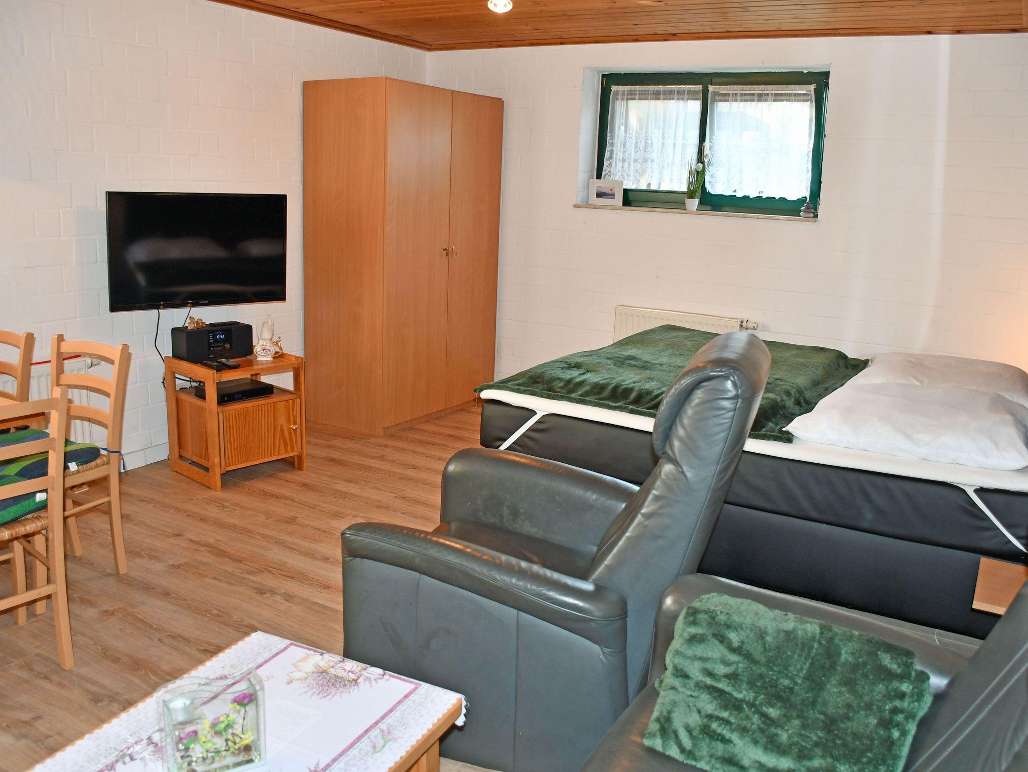 Wir vermieten hier eine modern und liebevoll eingerichtete Ferienwohnungen (1 Wohn-/Schlafzimmer, 1 Schlafzimmer, Küchenzeile, Dusche/WC, WLAN, Terrasse mit Gartenmöbeln, Soutterain) für 4 Gäste.