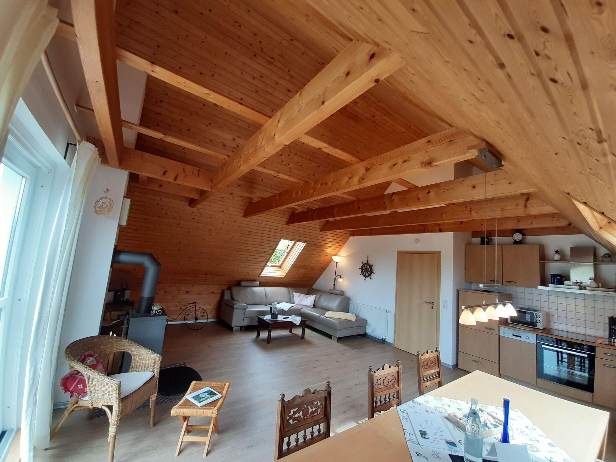 Für Ihren angenehmen Aufenthalt in unserem Haus bieten wir Ihnen ein umfangreiches Sortiment an Zubehör und Ausstattung. Die Küche ist mit Geschirrspüler, Kühl-Gefrier-Kombination, 4-fach Cerankochfeld, Backofen, Mikrowelle, Kaffeemaschine, Toaster, Wasserkocher, Geschirr/Besteck/Kochutensilien ausgestattet. Ein großer Esstisch rundet das Angebot ab. Bei Bedarf können Kinderstühlchen für die Kleinen bis 3 Jahre zur Verfügung gestellt werden.