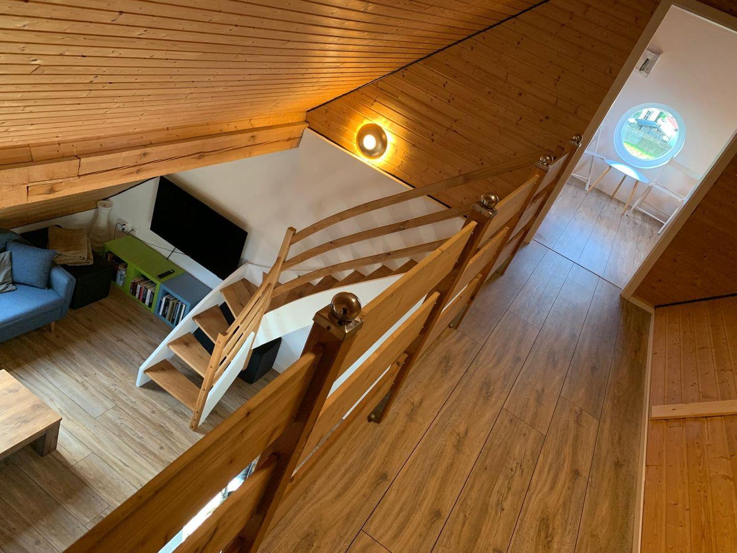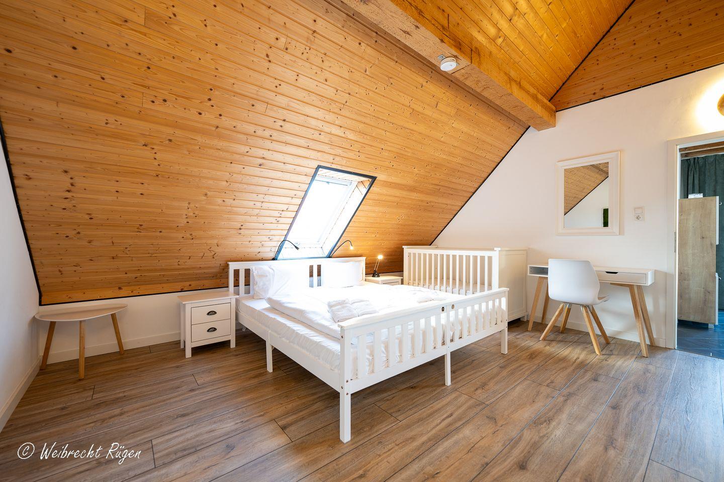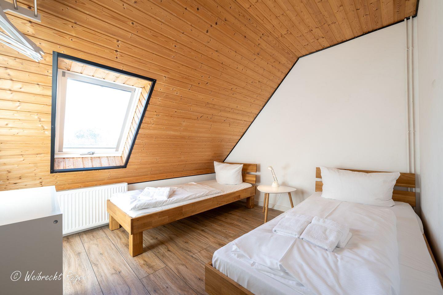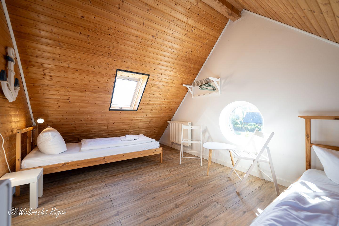 Der gemütliche Spitzboden beherbergt zwei weitere Schlafzimmer mit jeweils zwei Einzelbetten, also der perfekte Rückzugsort für spielende Kinder.