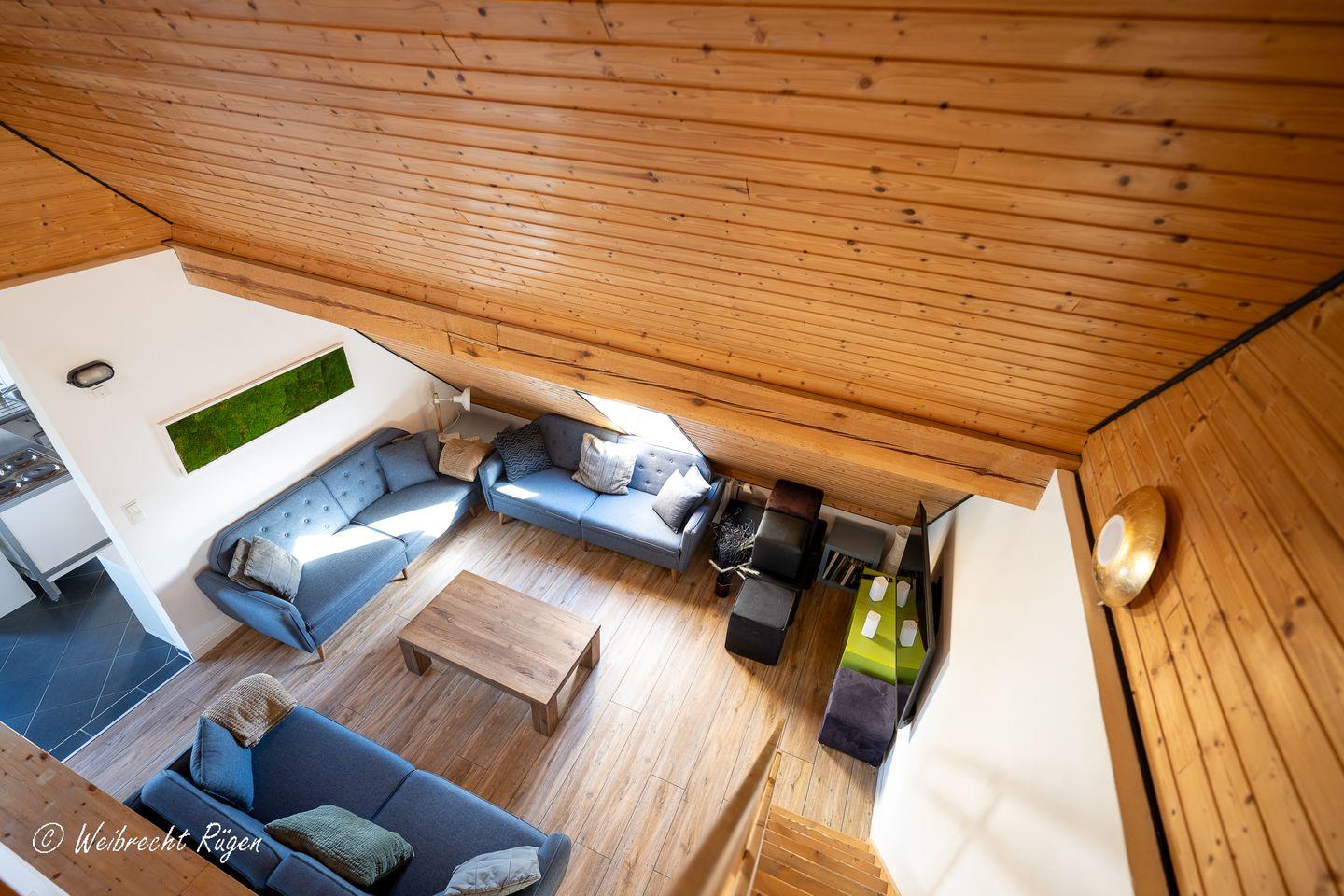 Im Obergeschoss können Sie den Tag ausklingen lassen. Die lichtdurchflutete Galerie beherbergt den Wohnbereich mit angrenzendem Arbeitszimmer, sowie einer zweiten voll ausgestatteten Küche. Neben drei Schlafzimmern befindet sich auf dieser Etage auch ein drittes Dusch- und Wannenbad, sowie der Zugang zum Spitzboden.