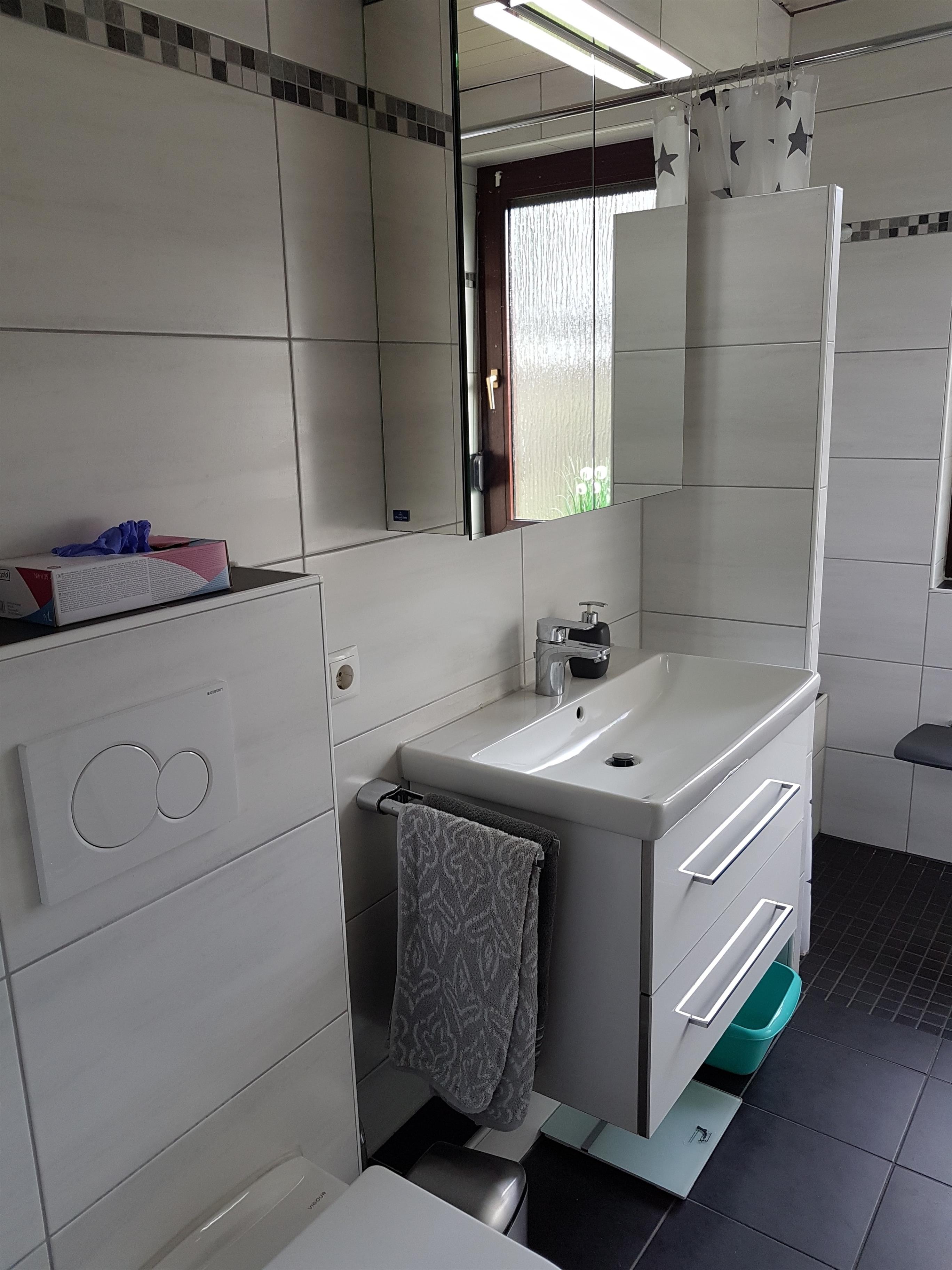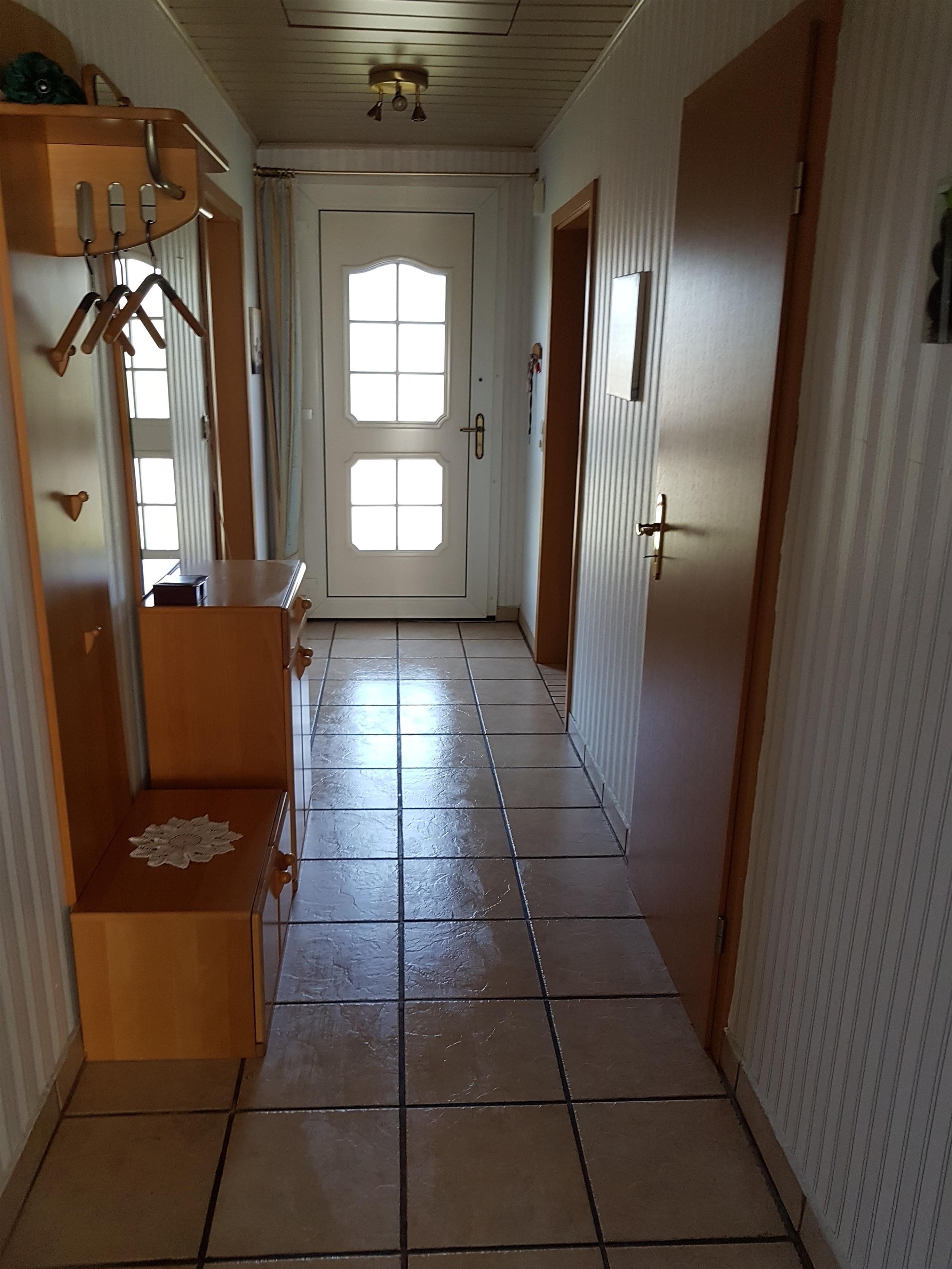 Wenn Sie ins Haus kommen ist gleich auf der linken Seite die voll ausgestattete Küche mit Essbereich zu finden. Die Küche lädt zum entspannten Kochen ein. Weiter auf dem Flur entlang finden Sie das moderne Duschbad mit WC, Waschbecken und ebenerdige Dusche mit Sitzmöglichkeiten beim Duschen.