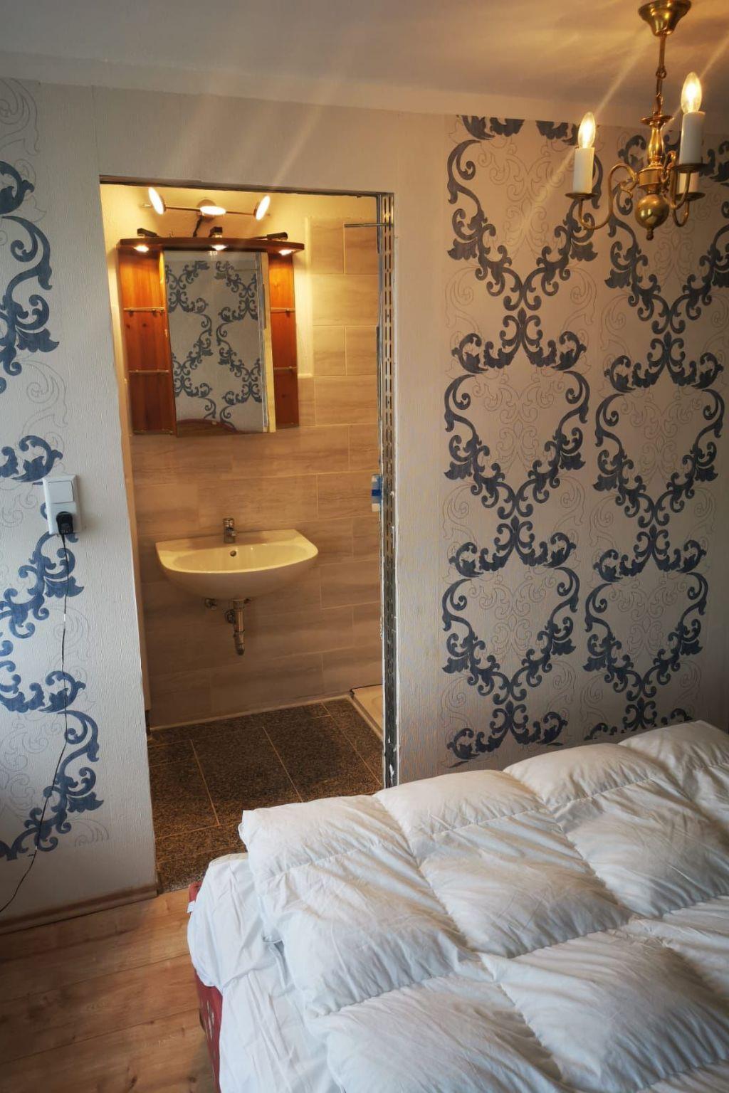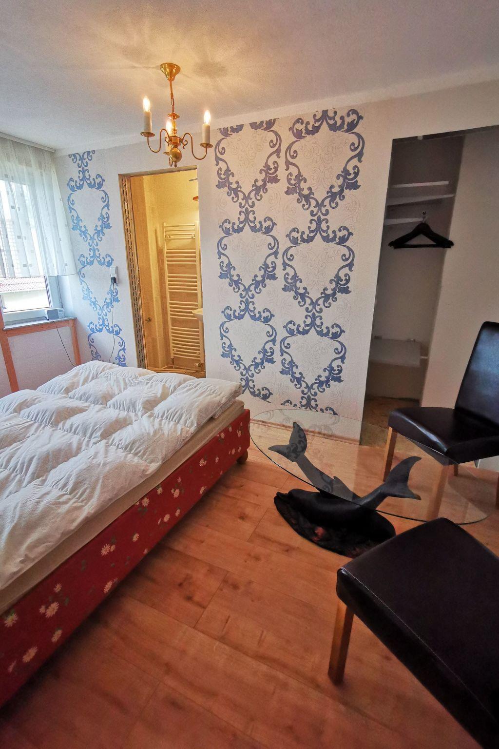 The flat is on the upper floor and is romantically furnished. It offers you a living room with cable TV and stereo system and a bathroom, a well-equipped eat-in kitchen with cooker, microwave, coffee machine, kettle, fridge. The bathroom has a separate shower, a WC and a large washbasin. It is heated by central heating. The beds in the bedrooms are as follows: one double bed 2mx2m and two double beds 1.8mx2m.