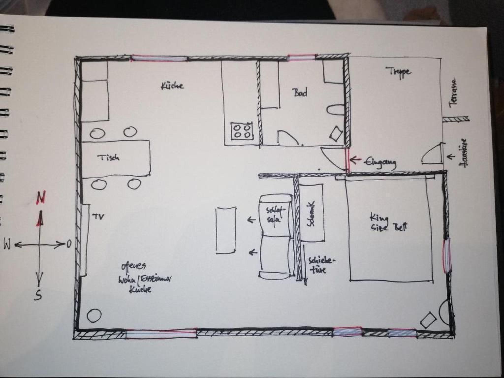Other living room equipment : The living room, dining room and kitchen form one unit. A 3rd person can sleep here on the sofa bed. Children up to 5 years sleep in their parents' bed free of charge. From 6 years please book the 3rd person or the extra bed.
