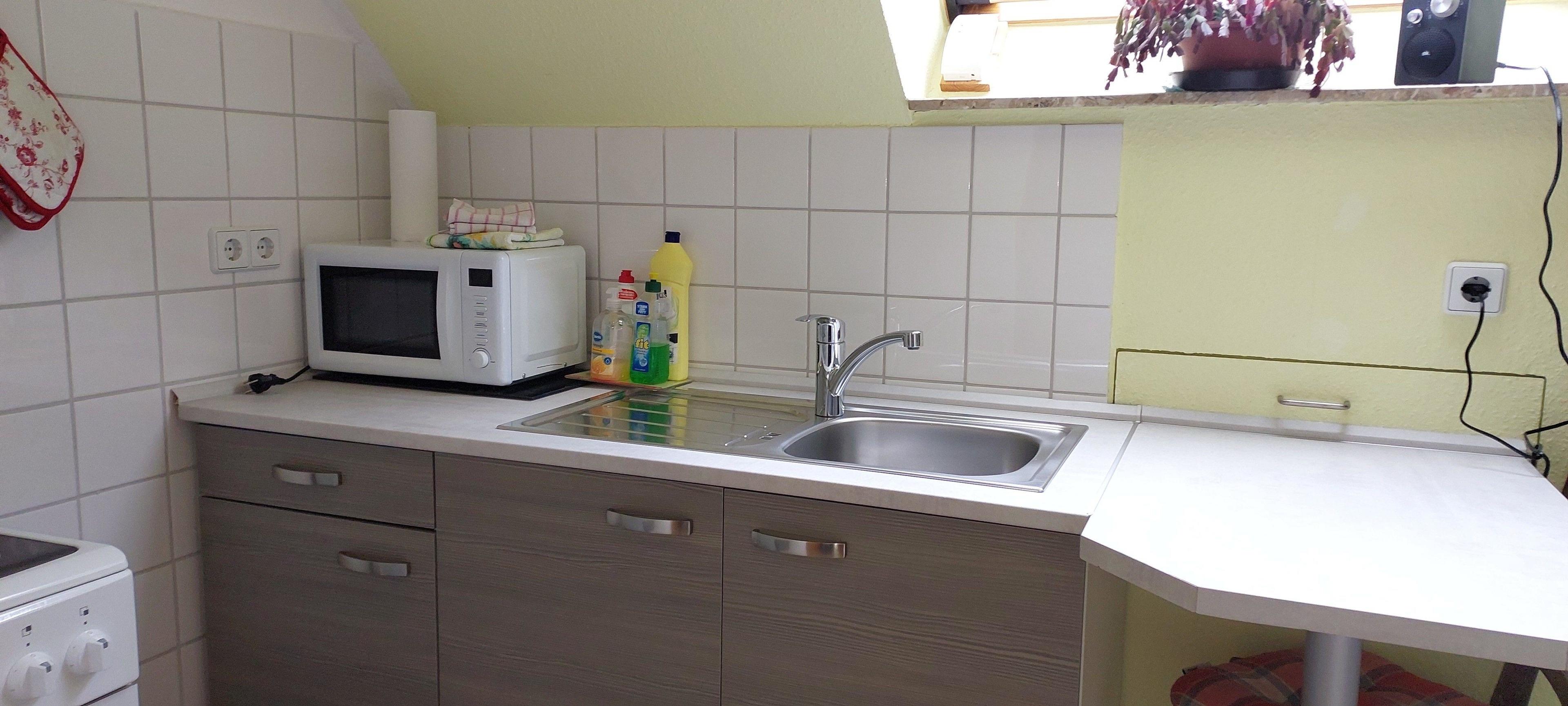 Die Obergeschosswohnung ist hell und freundlich eingerichtet. Wohnzimmer mit Balkon und Doppelbettchouch,Schlafzimmer mit Doppelbett, Aufbettung möglich, Küche mit guter Austattung und ein modernes Bad mit bodengleicher Dusche.