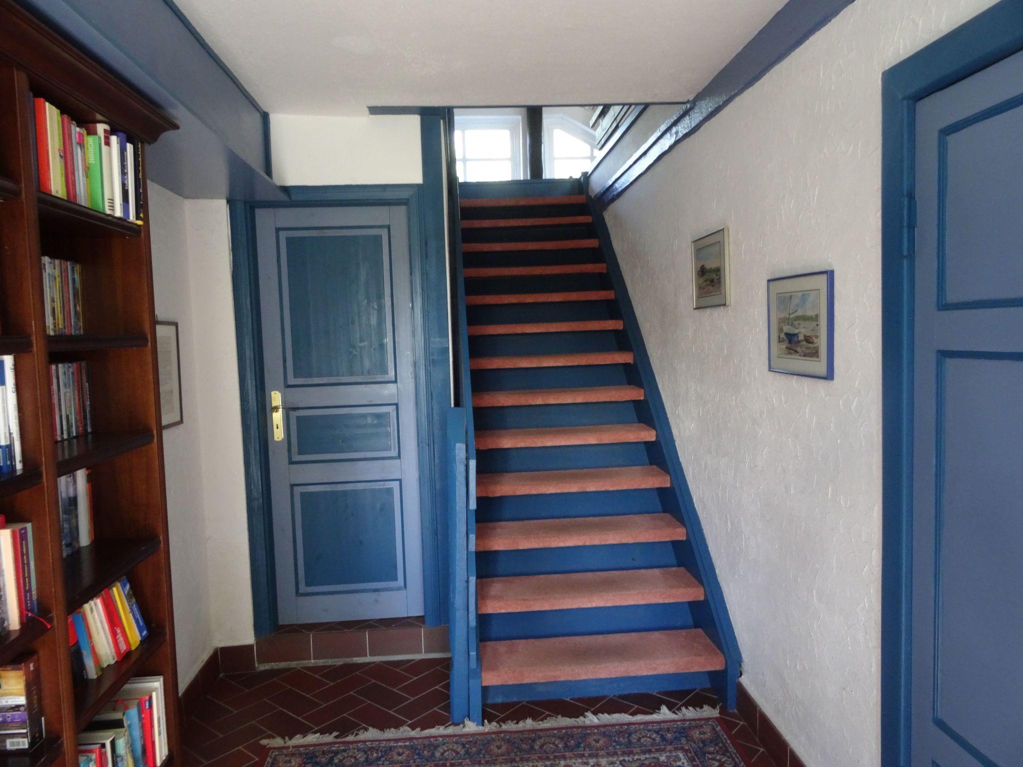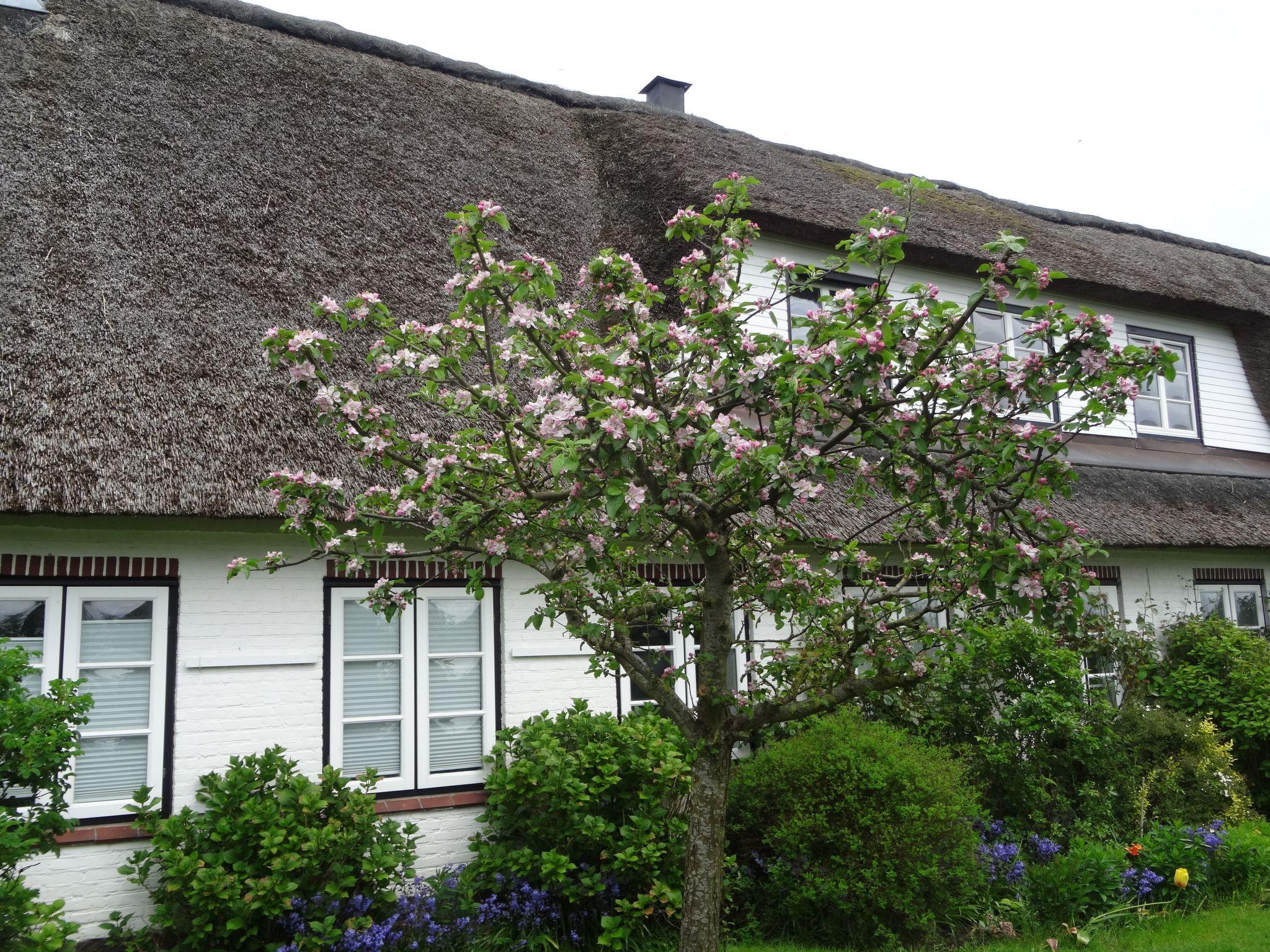 Outside, you can relax on a private seating area with garden chairs, table and parasol surrounded by flowering plants and fruit trees. A sauna is available in the garden from April and an outdoor shower is available from October. 40 m² of the stairwell offer a marvellous view over meadows and fields as well as access to a cleaning room and a washing machine and dryer, which can be used free of charge. A selection of books, games, DVDs and BluRays rounds off the offer.
