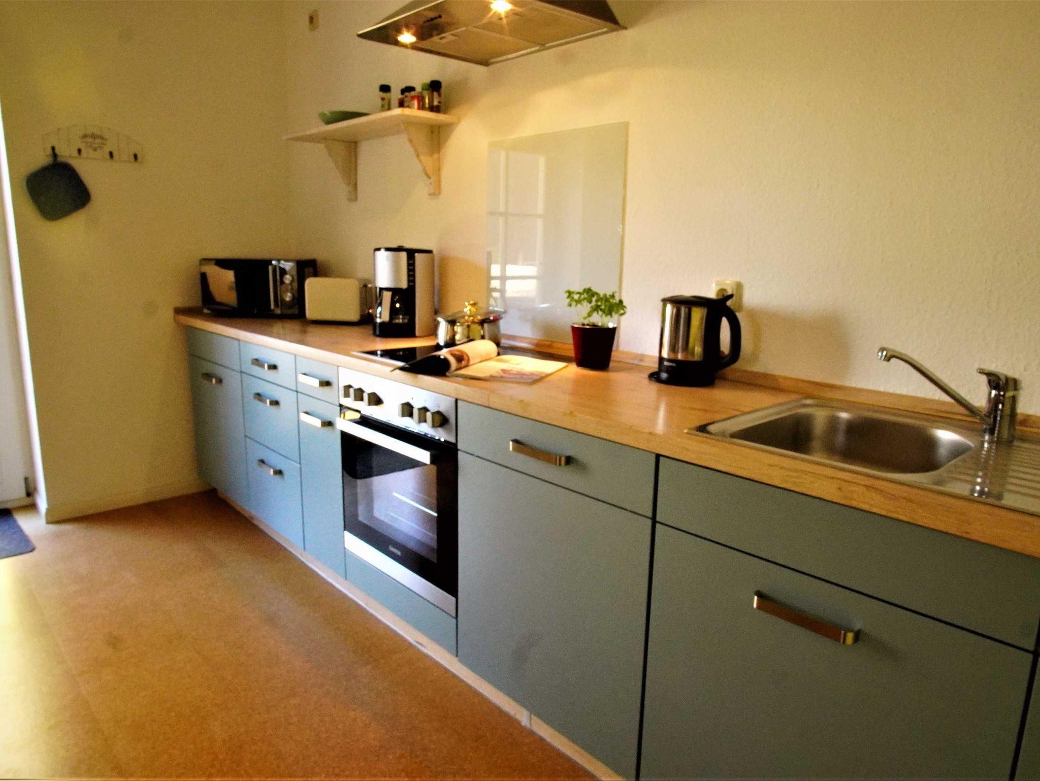 Die offene Wohnküche lässt das Kochen zu einem geselligen Ereignis werden. Die gut ausgestattete Küche ermöglicht, auch im Urlaub leckere Gerichte selber zu kochen.