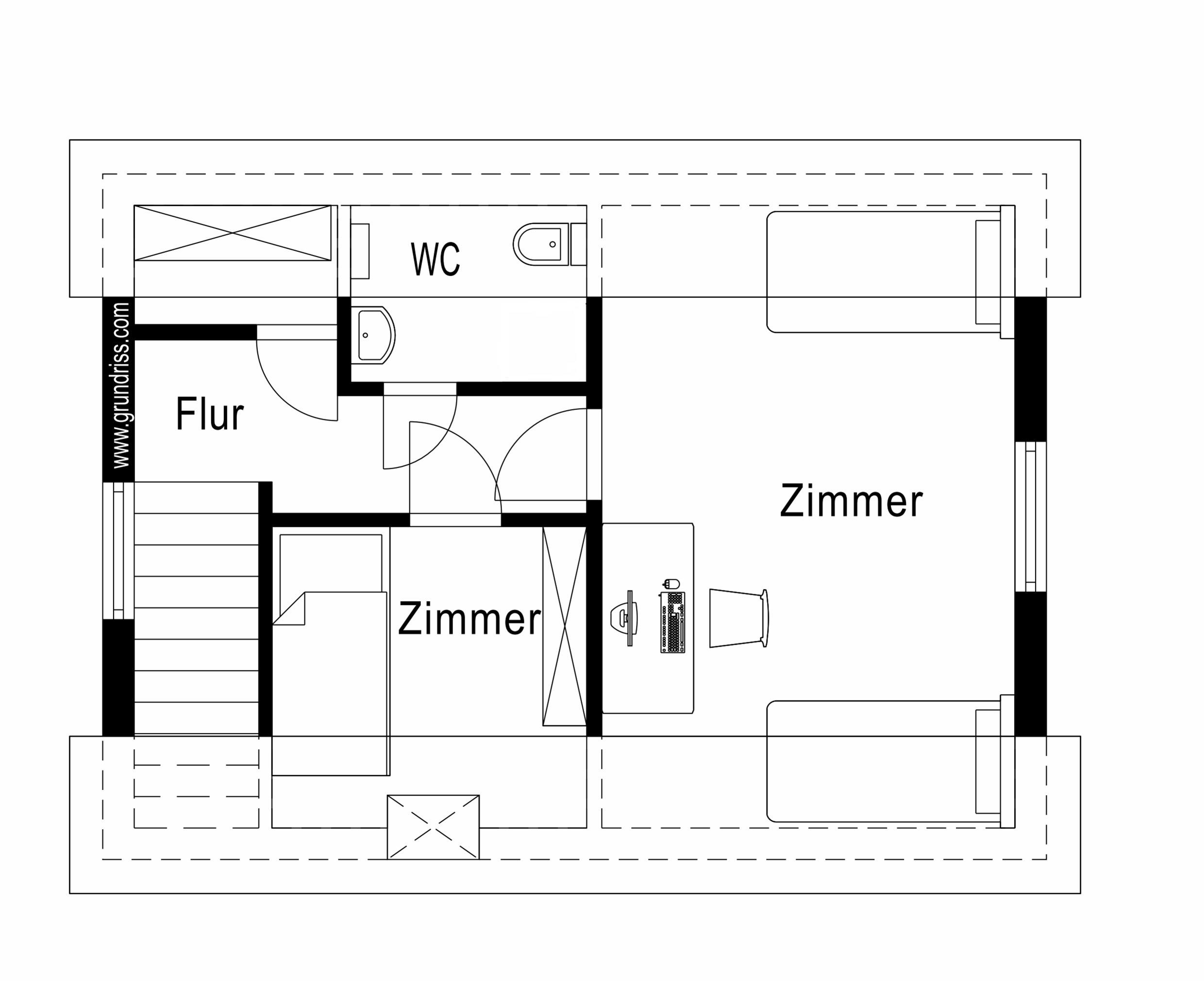 OG: 1 Zweibettzimmer, 1 Einzelzimmer (Bett 190cm), WC
