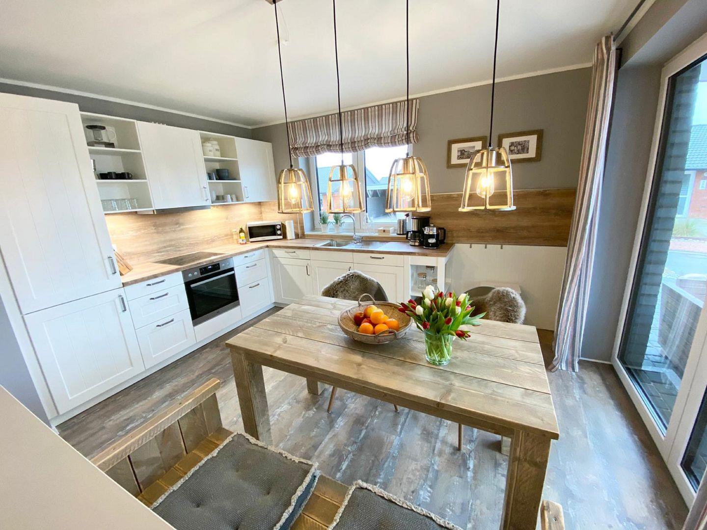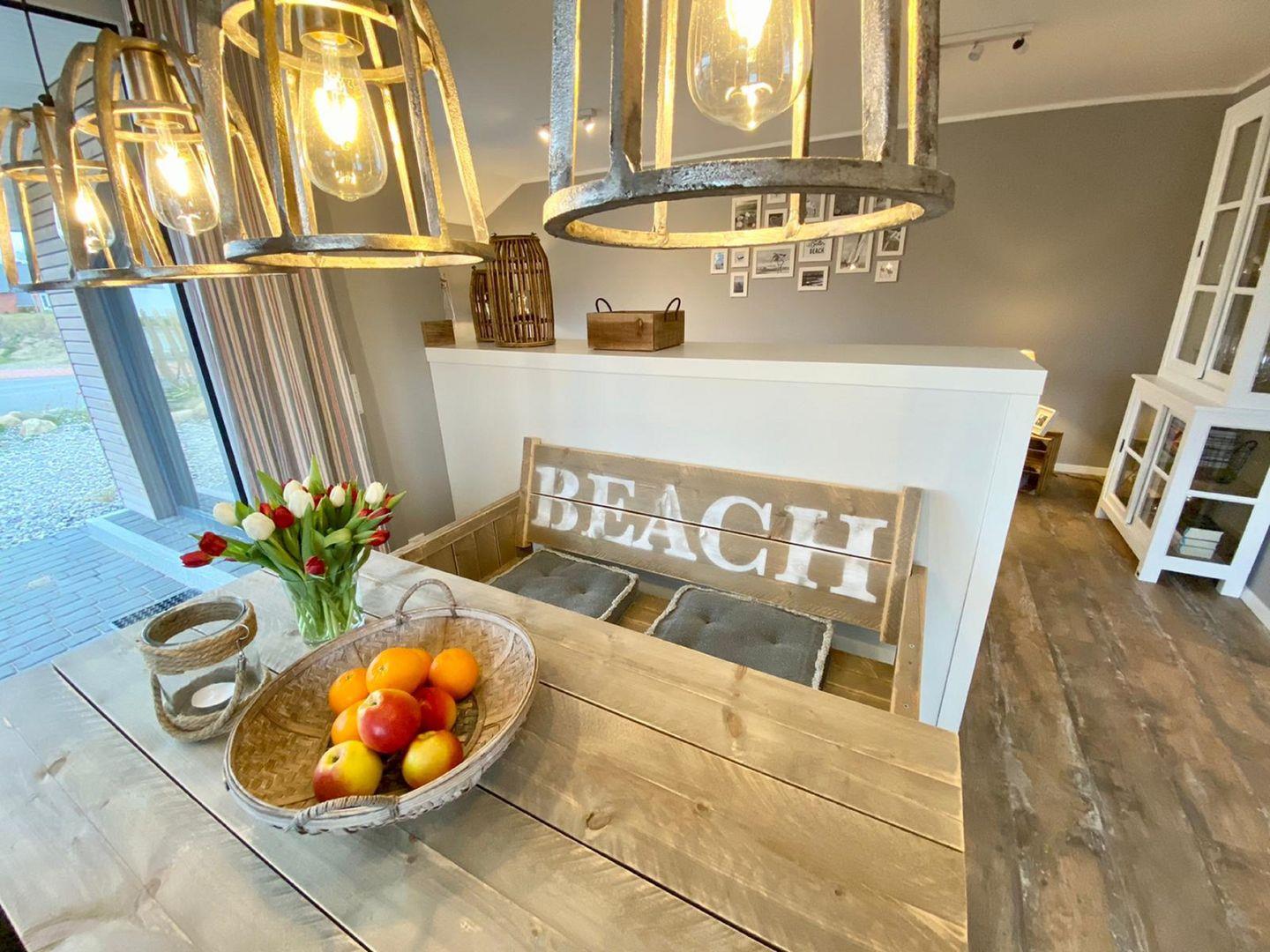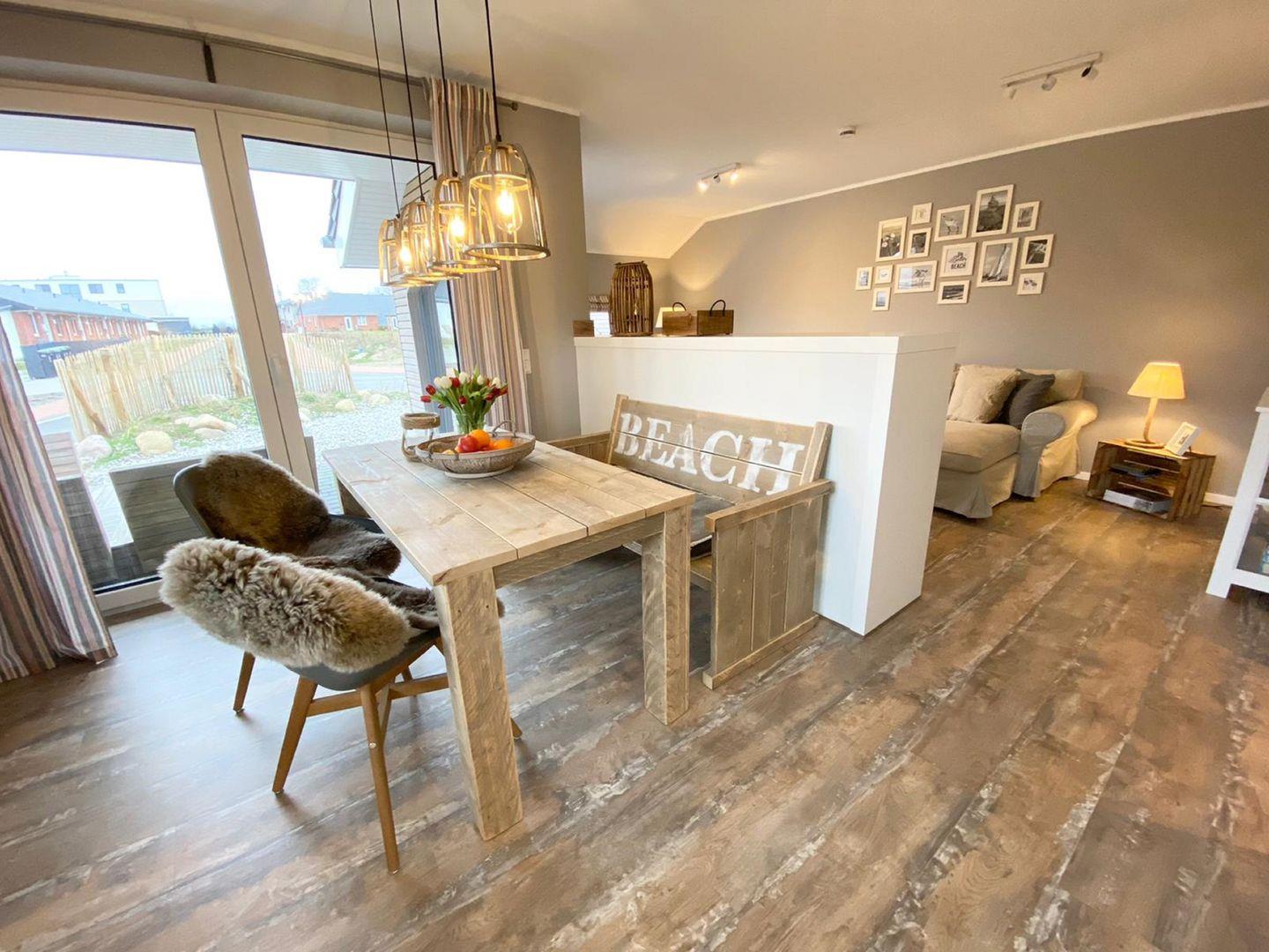 Die charmante Doppelhaushälfte "Sandpiper" mit 92m² liegt in einer absoluten Traumlage in der Nähe der Geltinger Birk. Die Doppelhaushälfte ist komplett ebenerdig und verfügt über eine offene Wohnraumgestaltung. Die gesamte Einrichtung des Hauses ist sehr modern und im maritimen, dänischen Stil gehalten. Das Wohnzimmer ist mit einem gemütlichen Sofa, einem Ohrensessel mit Fußhocker und einem Flatscreen-TV ausgestattet. Durch eine stilvolle TV-Konsole wird der Essbereich vom Wohnzimmer optisch getrennt. Der Essbereich hat einen exklusiven Holztisch mit einer einzigartigen Sitzbank. Die offene, moderne Küche ist mit vielen Utensilien ausgestattet, wie einem Handmixer, einem Stabmixer, einer Kaffeemaschine und einem Geschirrspüler. Die beiden Schlafzimmer sind jeweils mit einem Doppelbett eingerichtet. Hier dominieren graue und sandfarbene Töne, die mit weißen Möbeln kombiniert sind und so eine sehr gemütliche Wohlfühlatmosphäre schaffen. Das große Badezimmer mit liebevollen Dekorationsdetails ist sehr modern und bietet eine ebenerdige Dusche, einen Föhn und einen Kosmetikspiegel. Zudem befindet sich im Haus auch noch ein Gäste-WC. Außerdem können Sie eine Waschmaschine, ein Staubsauger, ein Wäscheständer und