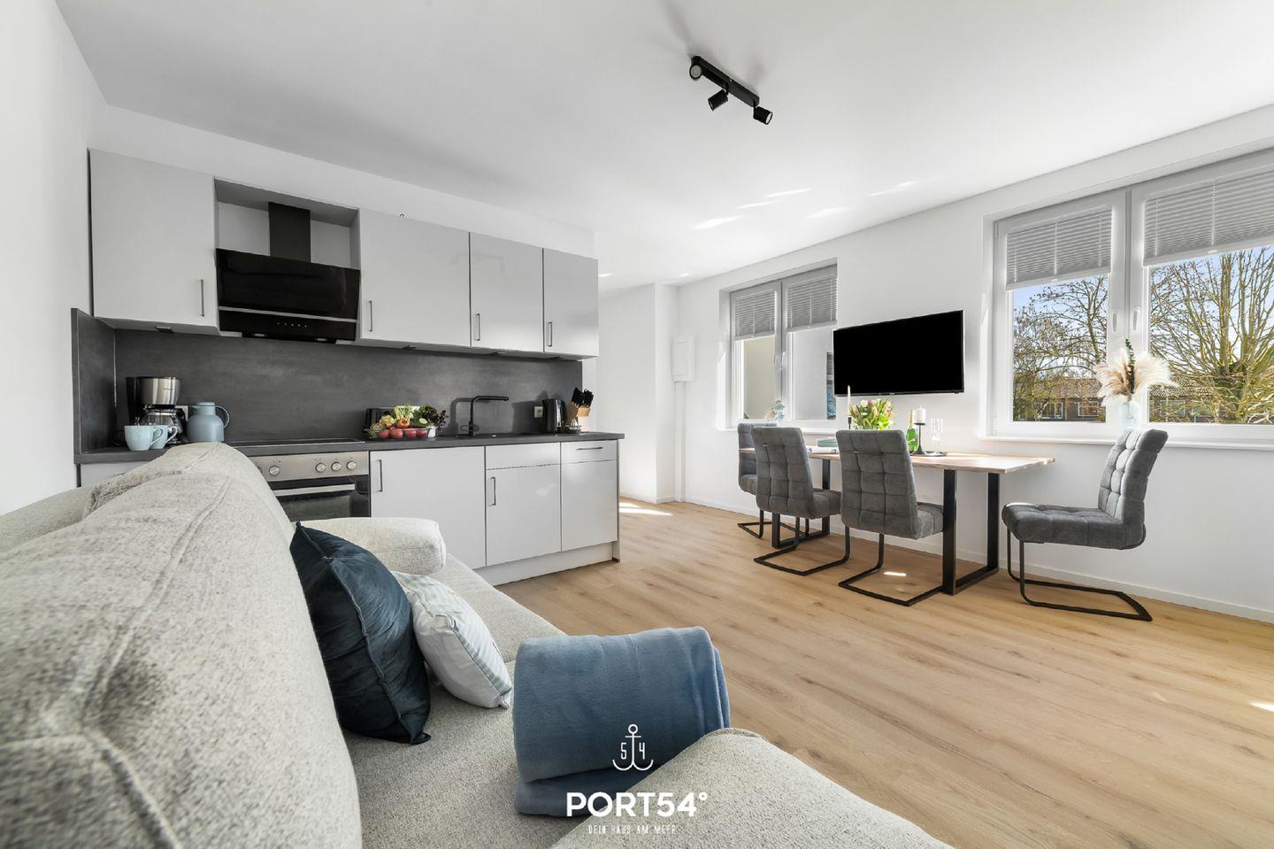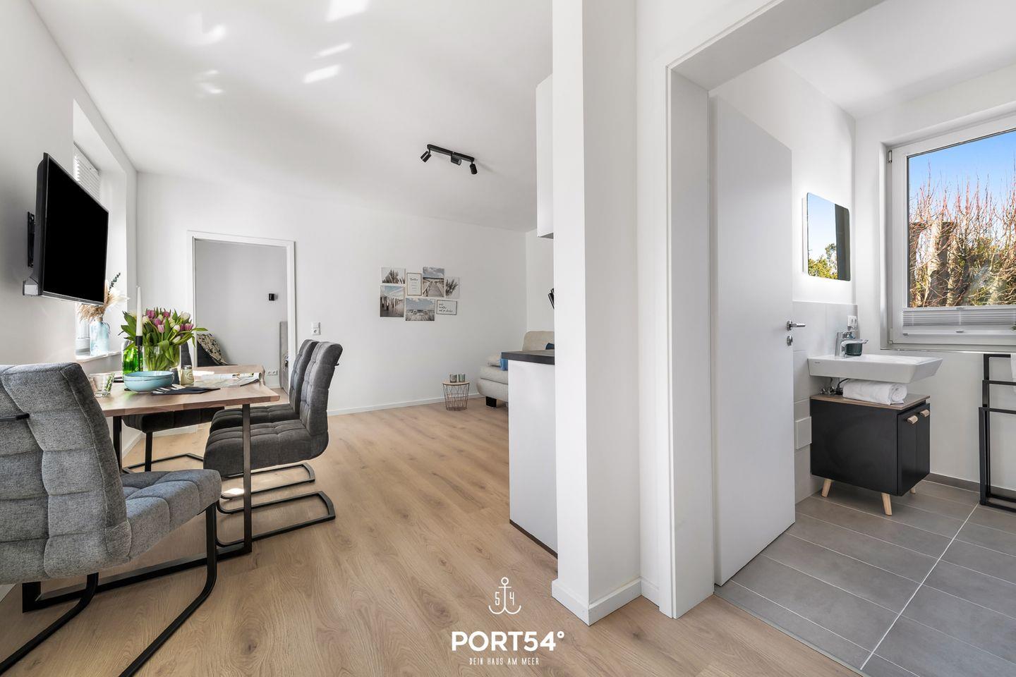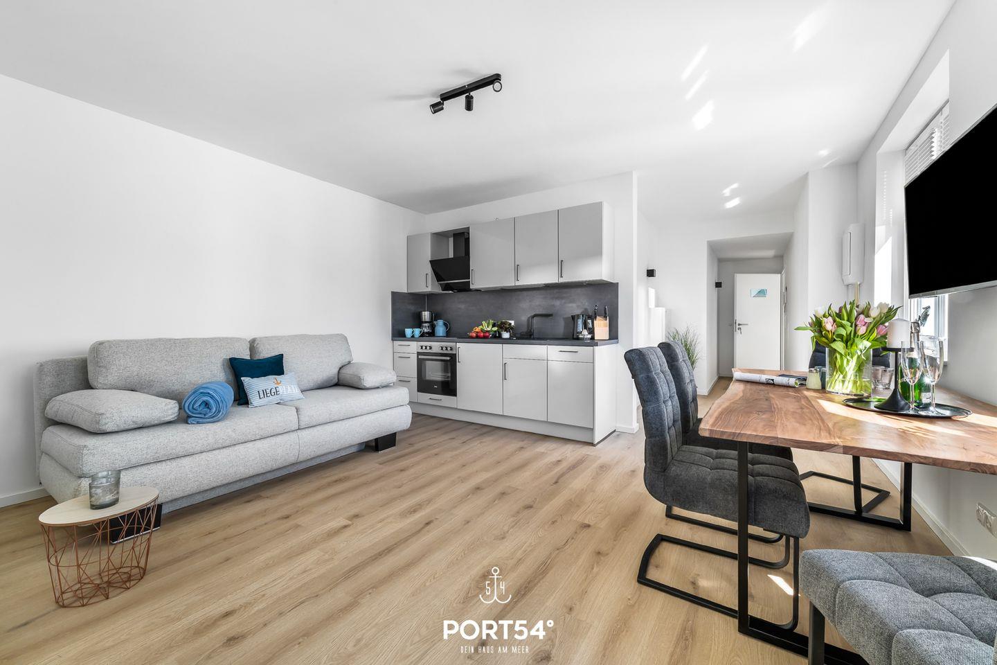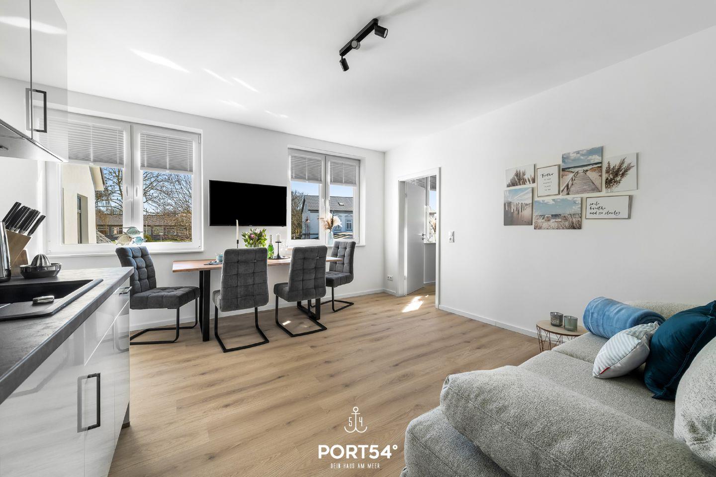 Die kernsanierte Ferienwohnung "Strandleben" bietet auf 47m² einen offenen Wohnbereich mit integrierter Küchenzeile und Essbereich, ein Schlafzimmer und ein Duschbad. Vor dem Haus erwartet Sie eine möblierte Terrasse. Laue Sommerabende lassen sich hier perfekt am Weber-Elektrogrill verbringen. Im Schlafzimmer steht ein Boxspring-Doppelbett. Zwei weitere Schlafplätze bietet die gemütliche Schlafcouch. Am Haus befindet sich ein gemeinschaftlicher Abstellraum für Fahrräder.