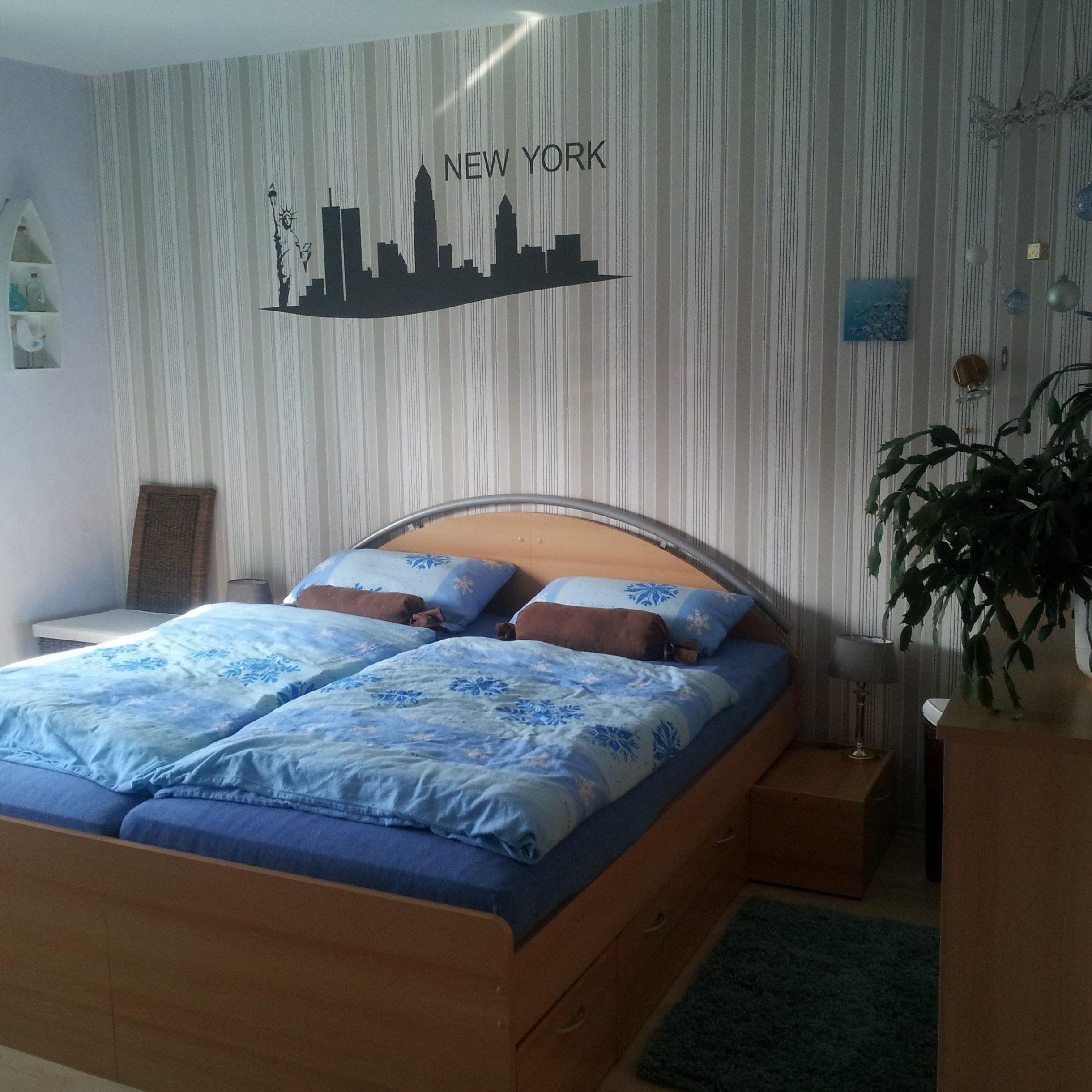 Im Schlafzimmer steht ein Doppelbett(180x200) und ein Französisches Bett(140x200)