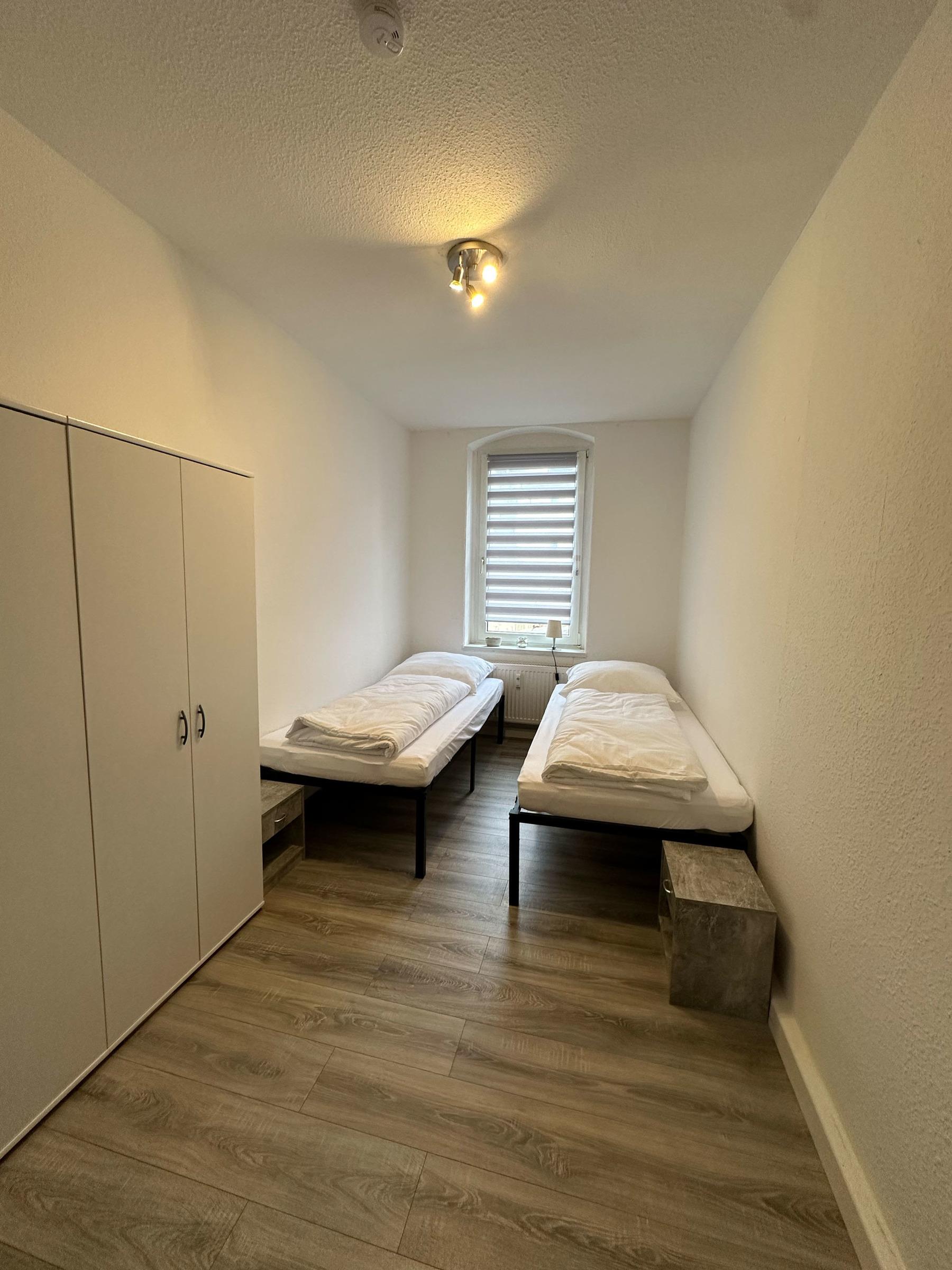 5 Personen können hier in Gera übernachten. Die Betten können als Ehebett genutzt werden oder auch einzeln gestellt werden.
