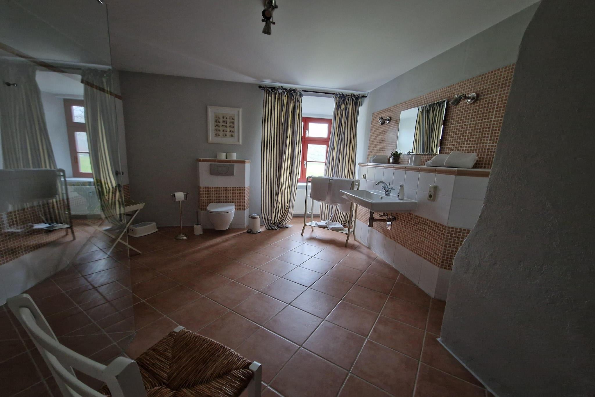 Omgivet af det fredelige landskab i Gerdshagen tilbyder denne charmerende lejlighed i stueetagen et afslappende tilflugtssted for op til fire gæster. Med to soveværelser med dobbeltsenge, to sammenklappelige senge og tankevækkende detaljer som en børneseng og høj stol er den ideel til familier. Det fuldt udstyrede køkken, satellit-tv og WiFi sikrer komfort, mens den fælles pejsestue, anlagte have og terrasse med grill inviterer dig til at slappe af udendørs. Børn vil elske trampolinen, sandkassen, legeredskaber og bordtennis, mens voksne kan slappe af i en hængekøje eller nyde et spil bordfodbold. Østersøstranden ligger kun 22 km væk, og dagsture til Rostock (31 km) eller Wismar (39 km) byder på kulturel charme og kystflair. For lokal smag, spis på Gasthaus Lütten-Klein til solide nordtyske retter, eller udforsk den historiske Gerdshagen Herregård, en renæssanceperle med århundreder gamle træer og sæsonbestemte begivenheder. Uanset om du cykler gennem enge eller griller i haven, så blander dette Gerdshagen-ophold rustik charme med familievenlig sjov.