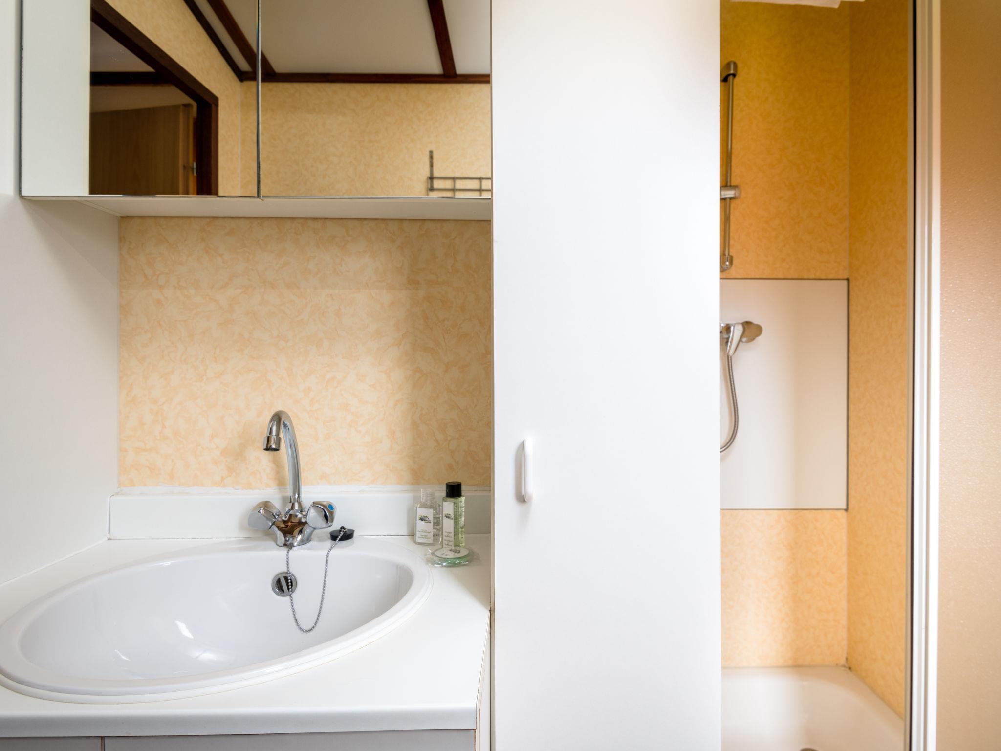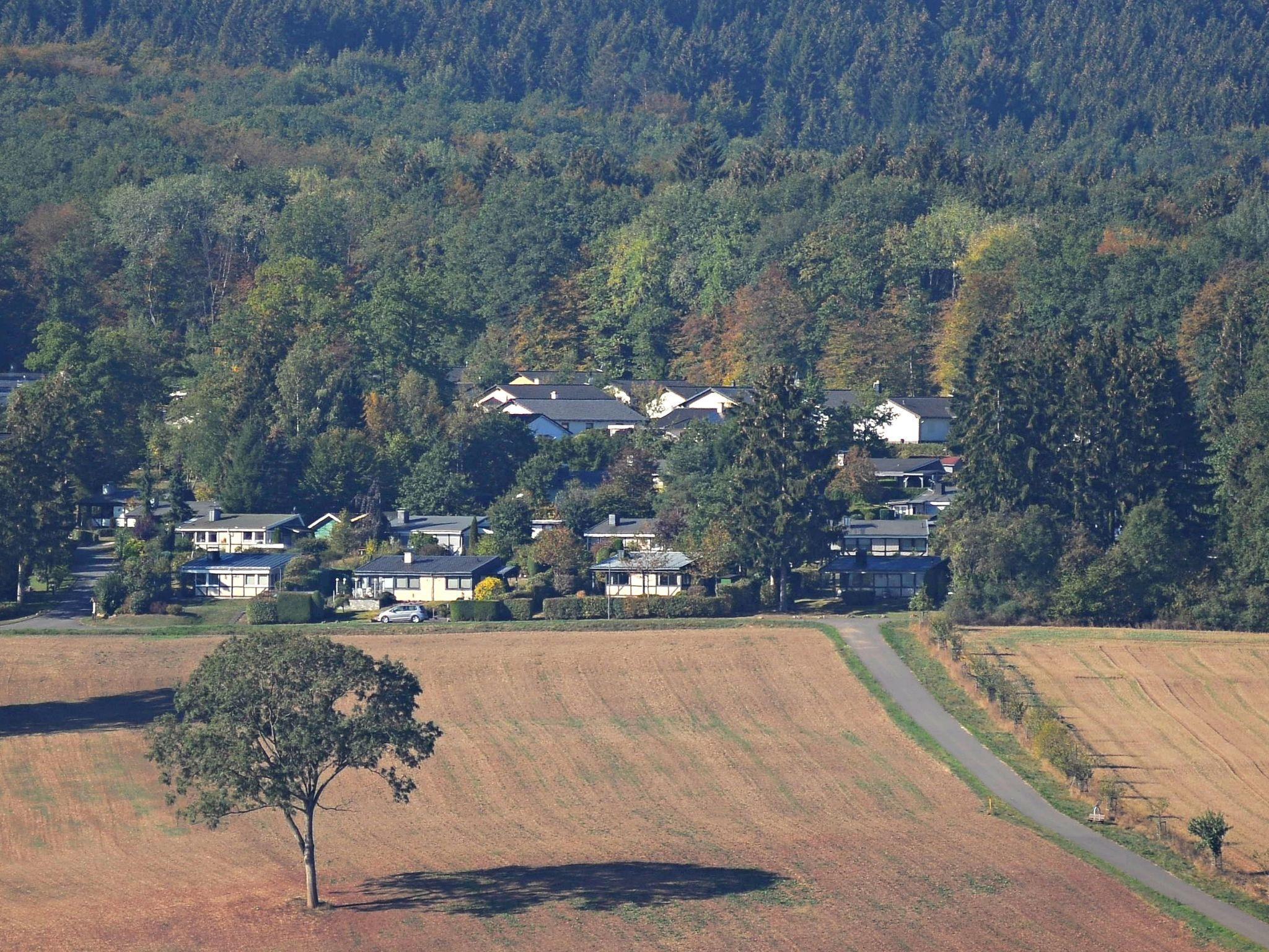 Resort "Waldferienpark Gerolstein". Outside the resort, 3 km from the centre of Gerolstein, in a secluded, quiet position on top of a hill, 100 m from the edge of the forest, 24 km from the lake, 100 m from the stream, in the countryside. For shared use: indoor pool heated (70 m2, depth 130 cm) with internal staircase. Shower/WC in the pool area, children's playground (slide, swing, sandbox), petting farm. Private: garden with lawn. In the complex: restaurant, bar, breakfast room, lounge, billiard table, trampoline, sun terrace. Bread roll service possible (extra). Stepped path to the house. Parking on the premises. Shop 3 km, grocery 2.5 km, supermarket 2.5 km, shopping centre 3 km, bicycle rental 6 km, bus stop "Gerolstein" 3 km, railway station "Gerolstein" 3 km, outdoor swimming pool 3 km, bathing lake 3.2 km. Golf course (18 hole) 18 km, tennis 3 km, minigolf 50 m, riding stable 4 km, walking paths from the house 50 m. Nearby attractions: Kylltal, Burg Eltz. Well-known lakes can easily be reached: Pulvermaar 24 km. Please note: car recommended. The forest holiday park also has air hockey and outdoor chess. Facilities for shared use (some extra). Wood for the fireplace in the properties can be purchased at reception for an additional charge.