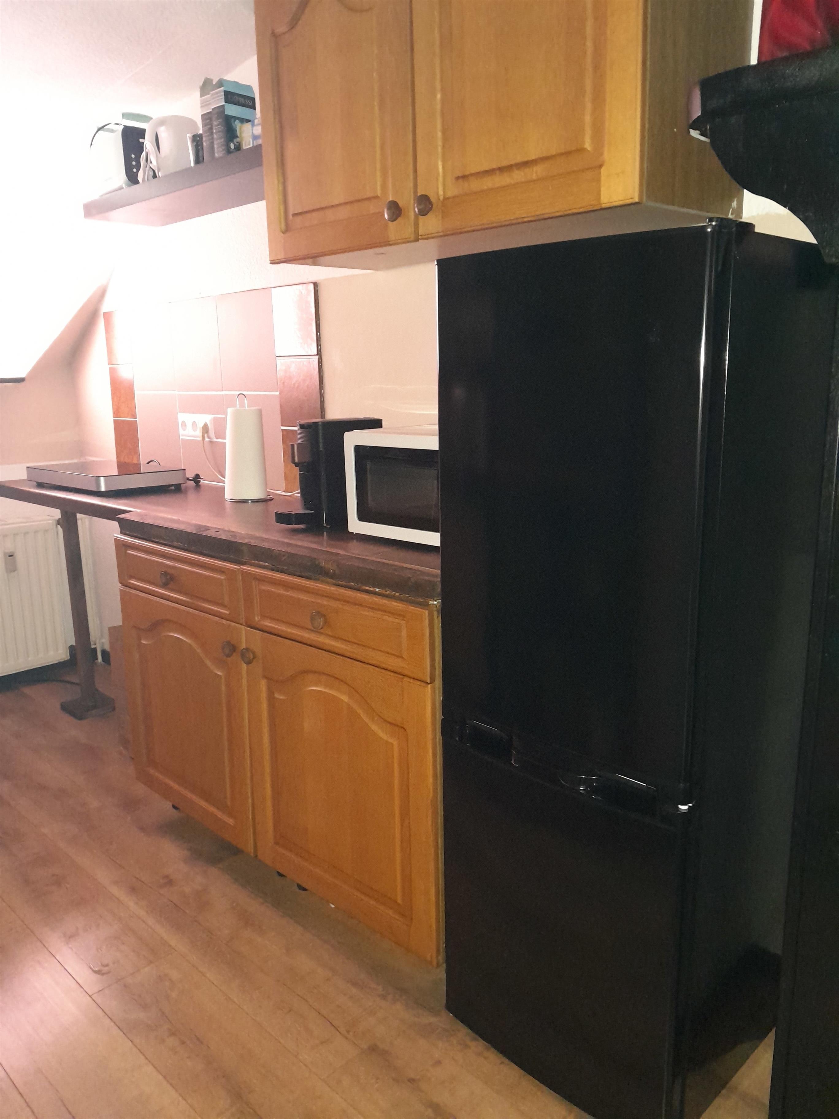 Es ist eine abgeschlossene Wohnung im Dachgeschoss, die man über den hinteren Gartenbereich des Wohnhauses erreicht.
